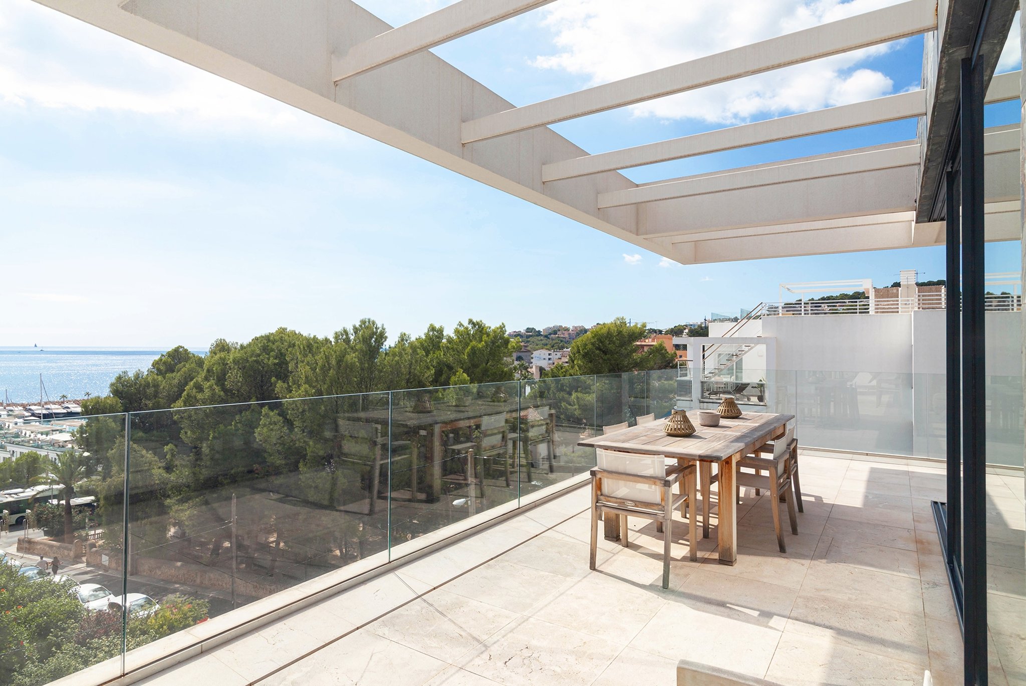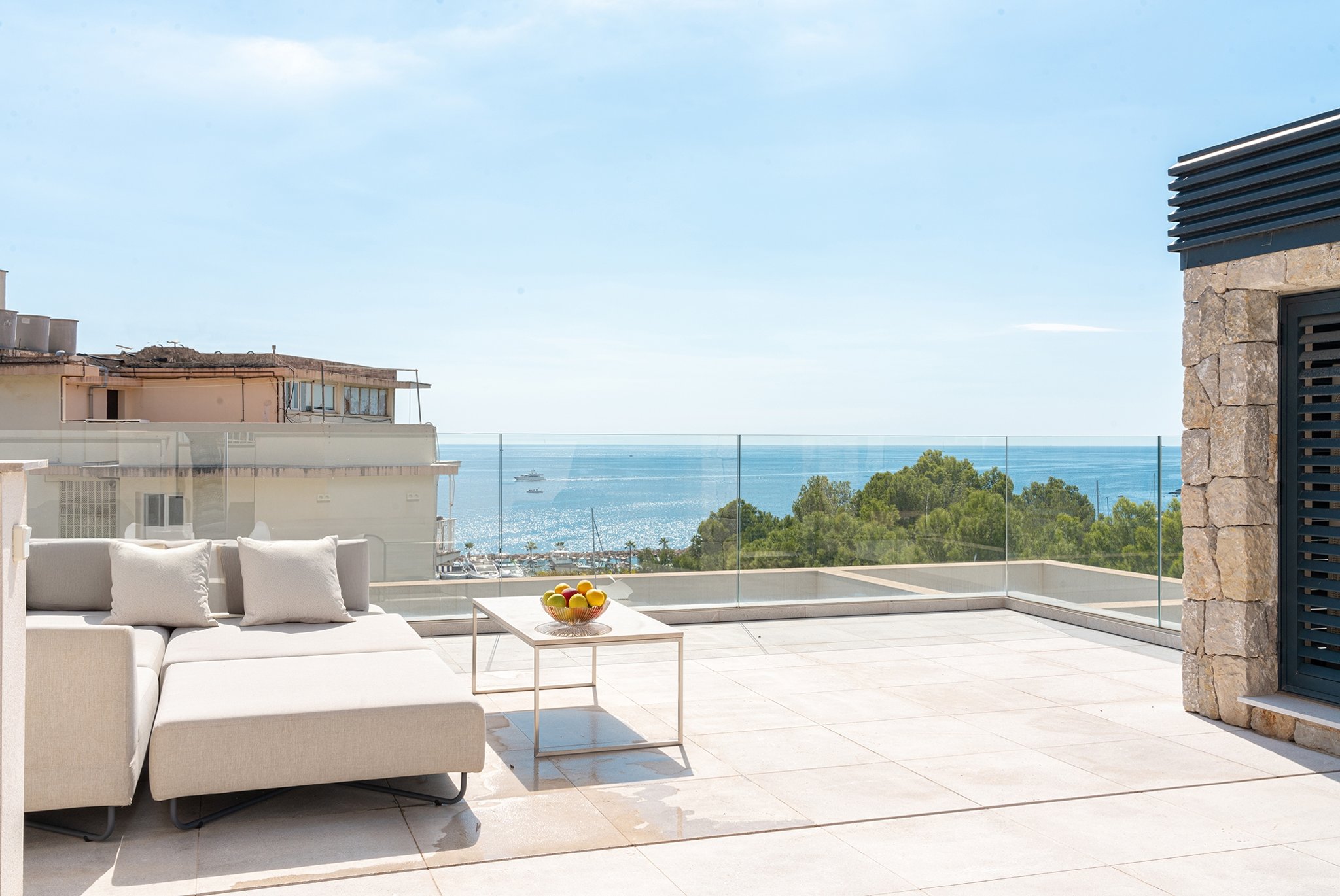 Just a few minutes’ walk from the marina in Cala Nova, this stylish and exclusive penthouse awaits, offering stunning sea views.Located on the top floor, the third level, the apartment features a living area of 131 m² and generous terraces totalling 119 m².
