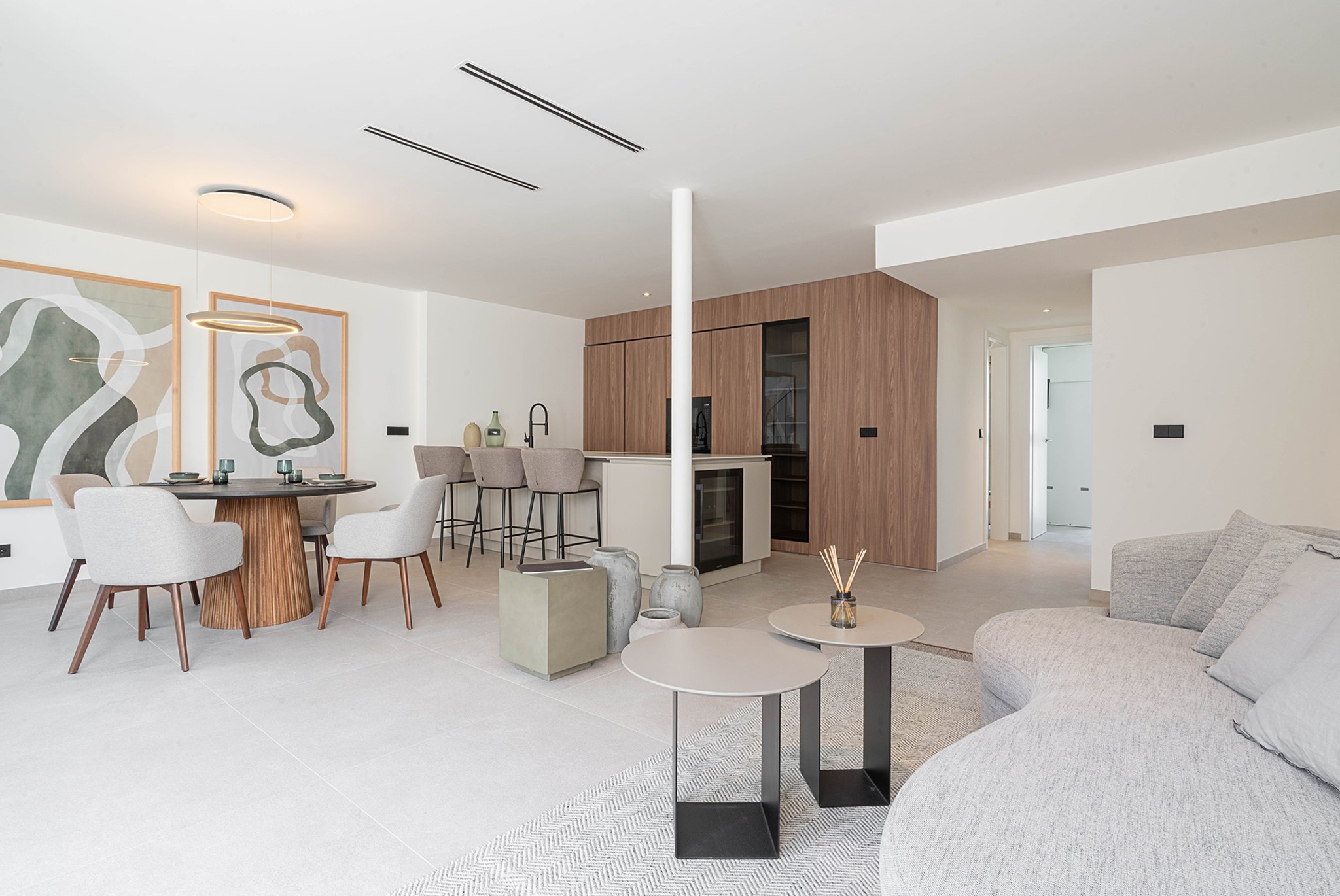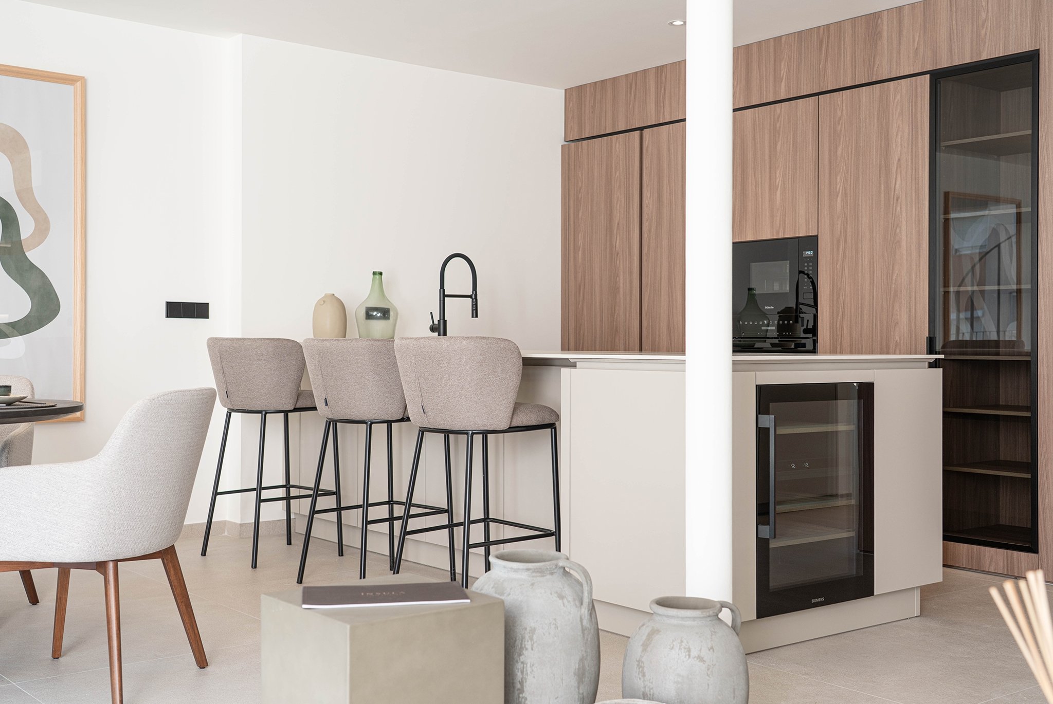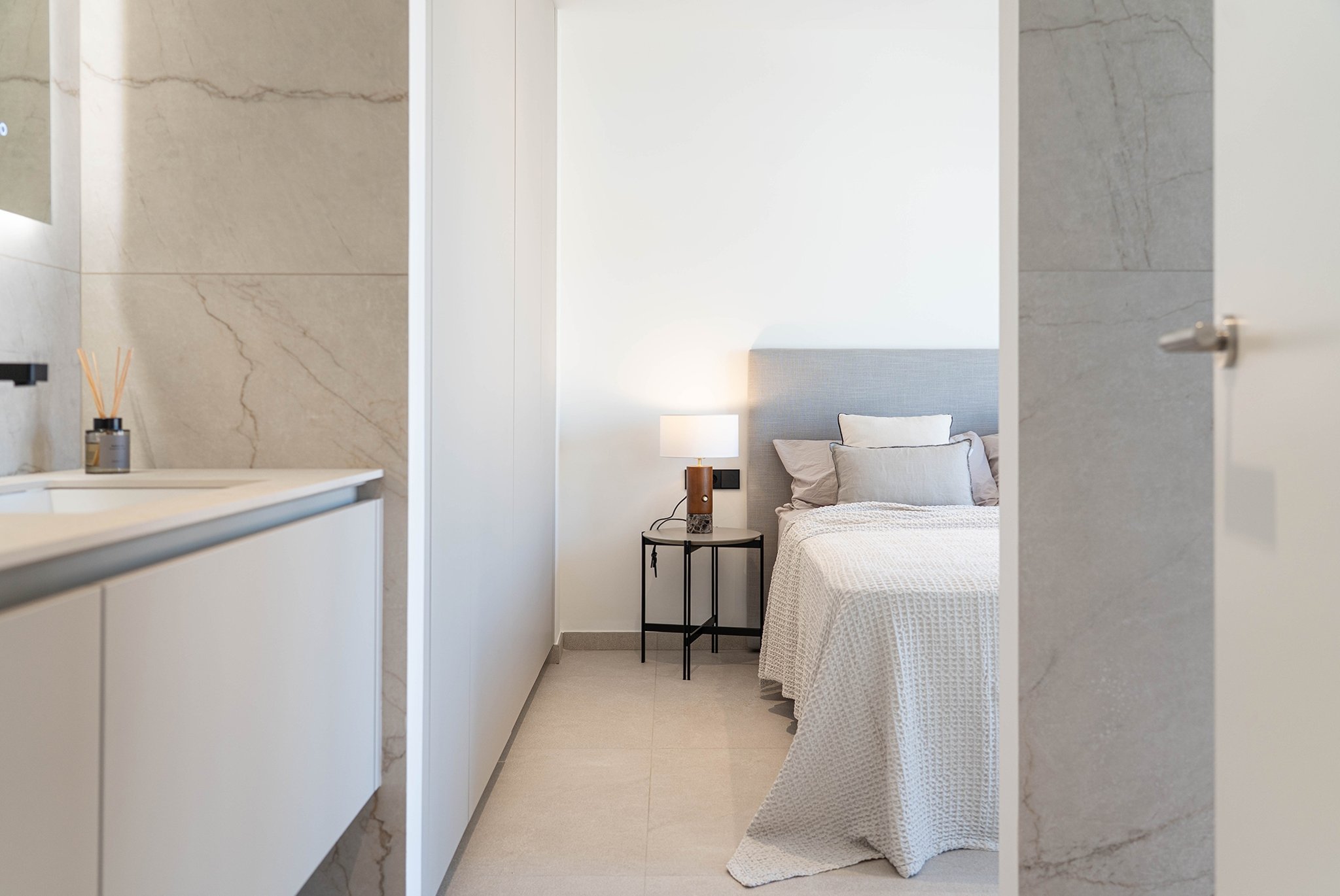 Hinter dem Projekt steht ein deutscher und ein spanischer Entwickler, der mediterranes Innenleben mit funktionalem Design und einem hohen deutschen Qualitätsstandard verbindet. Es wird 25 Apartments geben, von denen es insgesamt 3 Luxus-Penthäuser mit zwei großen, sonnenverwöhnten Terrassen gibt. Hier finden Sie Privatsphäre, obwohl Sie sich in einer Wohnanlage befinden. Darüber hinaus wird der Komplex über zwei beeindruckende Gemeinschaftsbereiche verfügen, die sowohl Gesundheit als auch Gelassenheit in unterschiedlichen Umgebungen bieten. Ein Pool mit Sonnenterrasse zum Sonnenbaden und ein Gartenbereich mit mediterranen Merkmalen und Bäumen bieten Ihnen Freizeit und Ruhe. Aber auch Energie und Vitalität im hellen Fitnessbereich mit Fenstern, die auf den Pool blicken lassen. Dies ist Komfort, der luxuriöse Ausstattung für Privathaushalte verkörpert! Von der geräumigen Eingangshalle aus können Sie mit einem der beiden Aufzüge zu Ihrer Wohnung gelangen oder sich dem großen Parkplatz auf zwei Ebenen mit Platz für Fahrräder und Abstellraum nähern (separat zu erwerben). Weil Design Luxus und Praktikabilität ist.