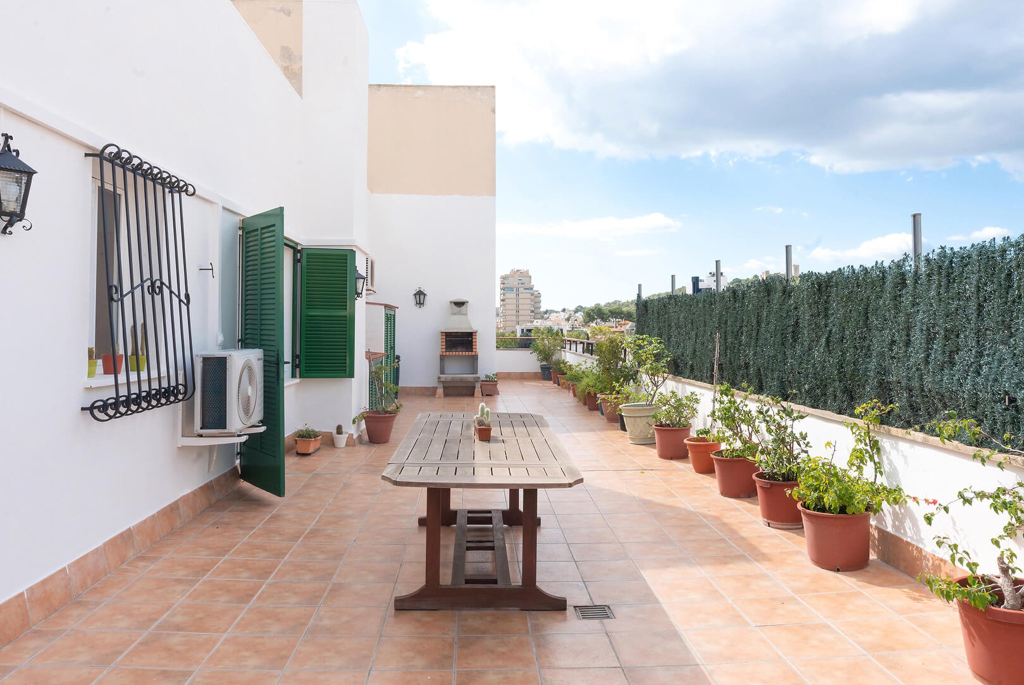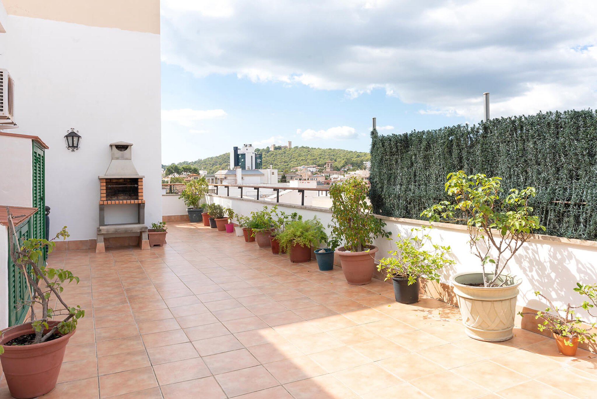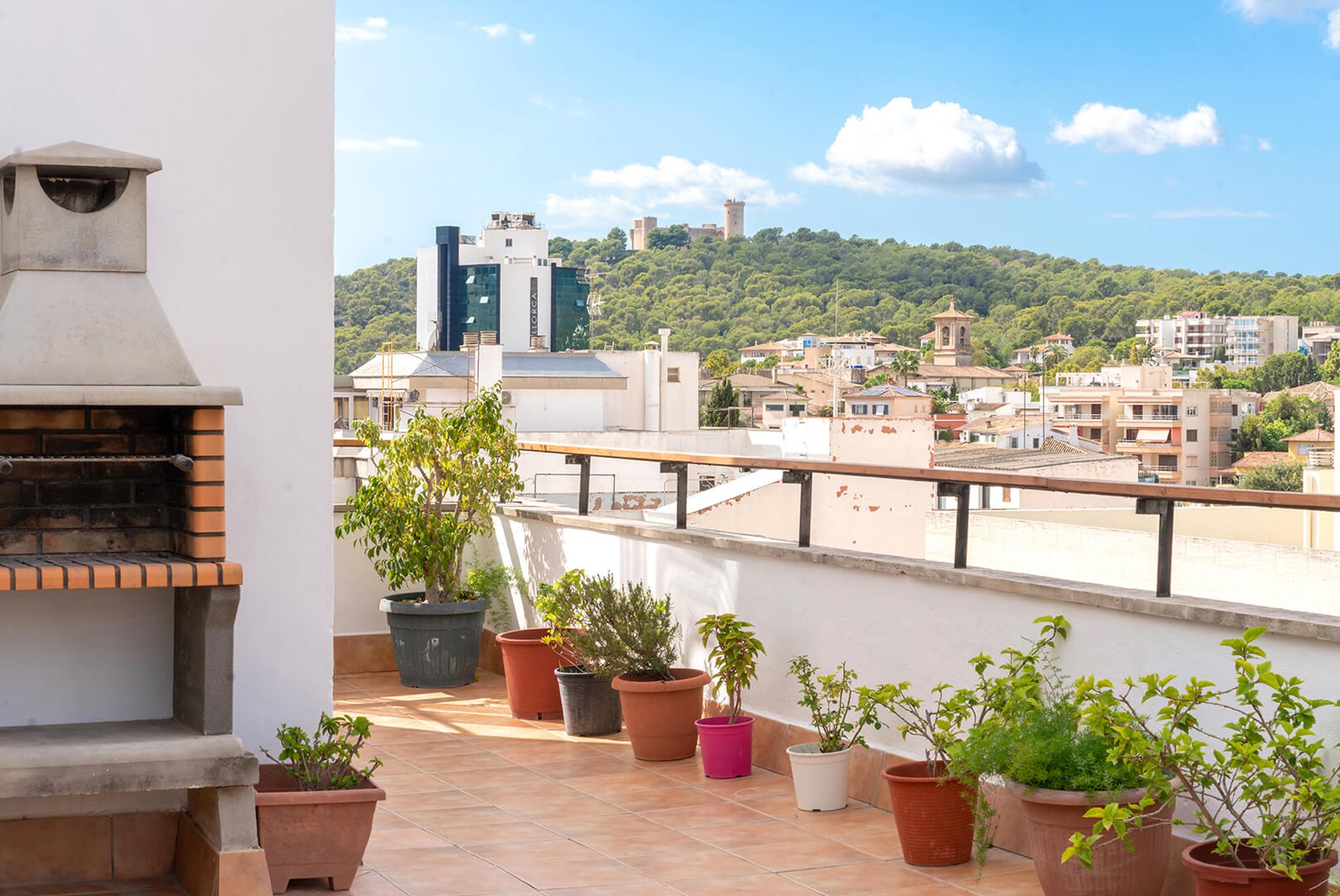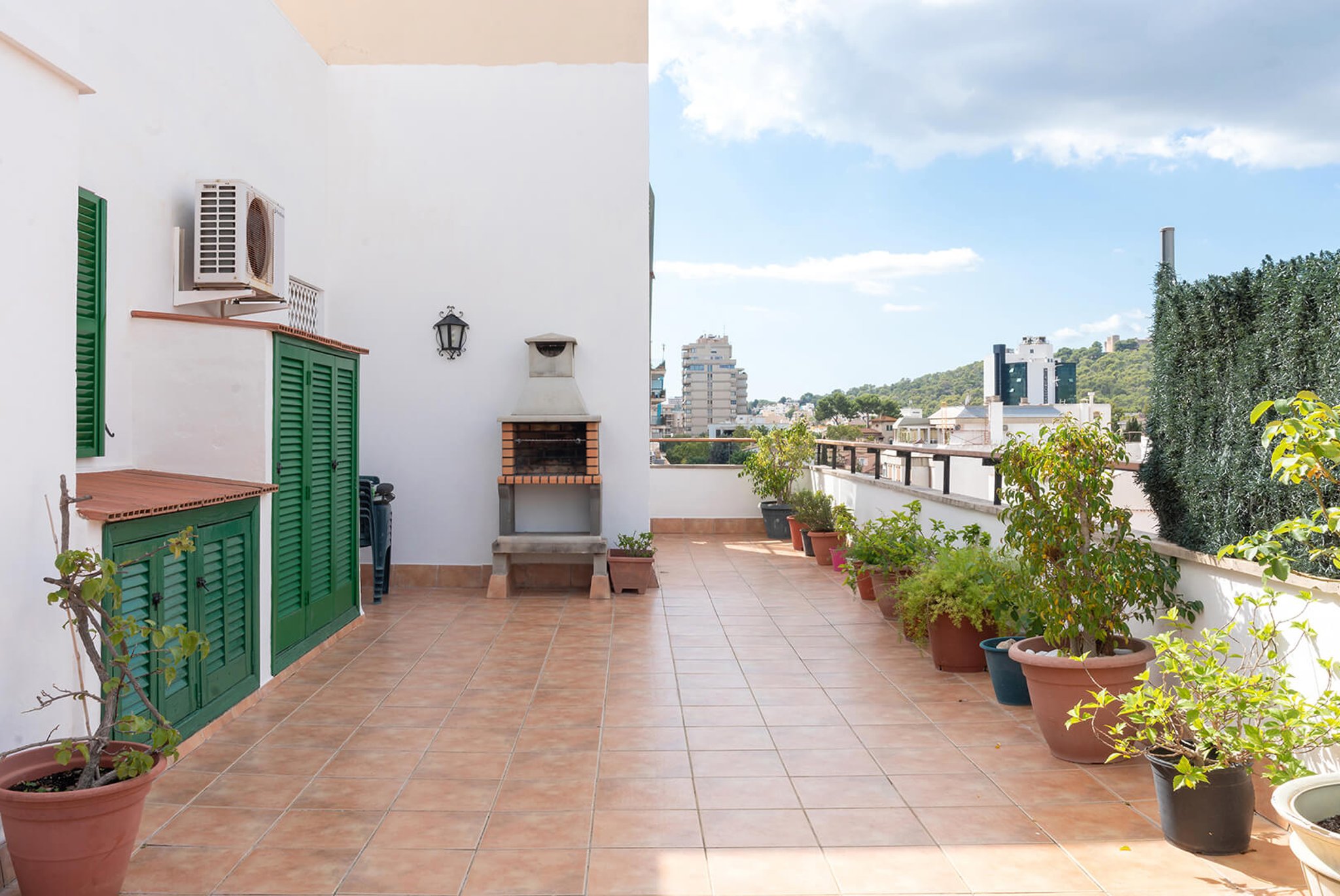Die Wohnung hat eine Wohnfläche von 75 m2, die sich auf ein Schlafzimmer mit Bad en-suite, ein großes Wohnzimmer mit Essbereich und separater Küche verteilt. Von der Wohnung aus haben Sie einen schönen Blick über die Dächer und können sogar auf das Meer blicken. Die große Terrasse von 80 m2 ist sowohl über das Wohnzimmer als auch von der Küche aus zu erreichen. Von der nach Westen ausgerichteten Terrasse haben Sie einen herrlichen Blick auf die Berge und das Schloss von Bellver. Das nach Süden ausgerichtete Wohnzimmer lässt viel natürliches Licht herein. Die Wohnung braucht ein kleines Update, hat aber großes Potenzial und kann mit kleinen Mitteln in ein Zuhause jenseits der Gewöhnlichkeit verwandelt werden.