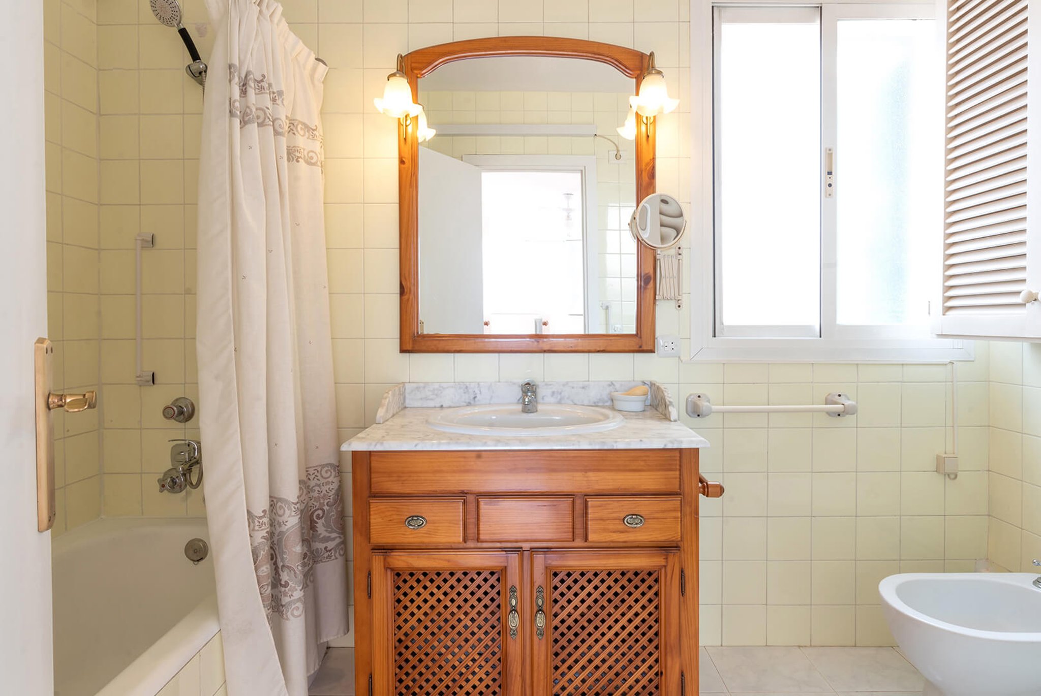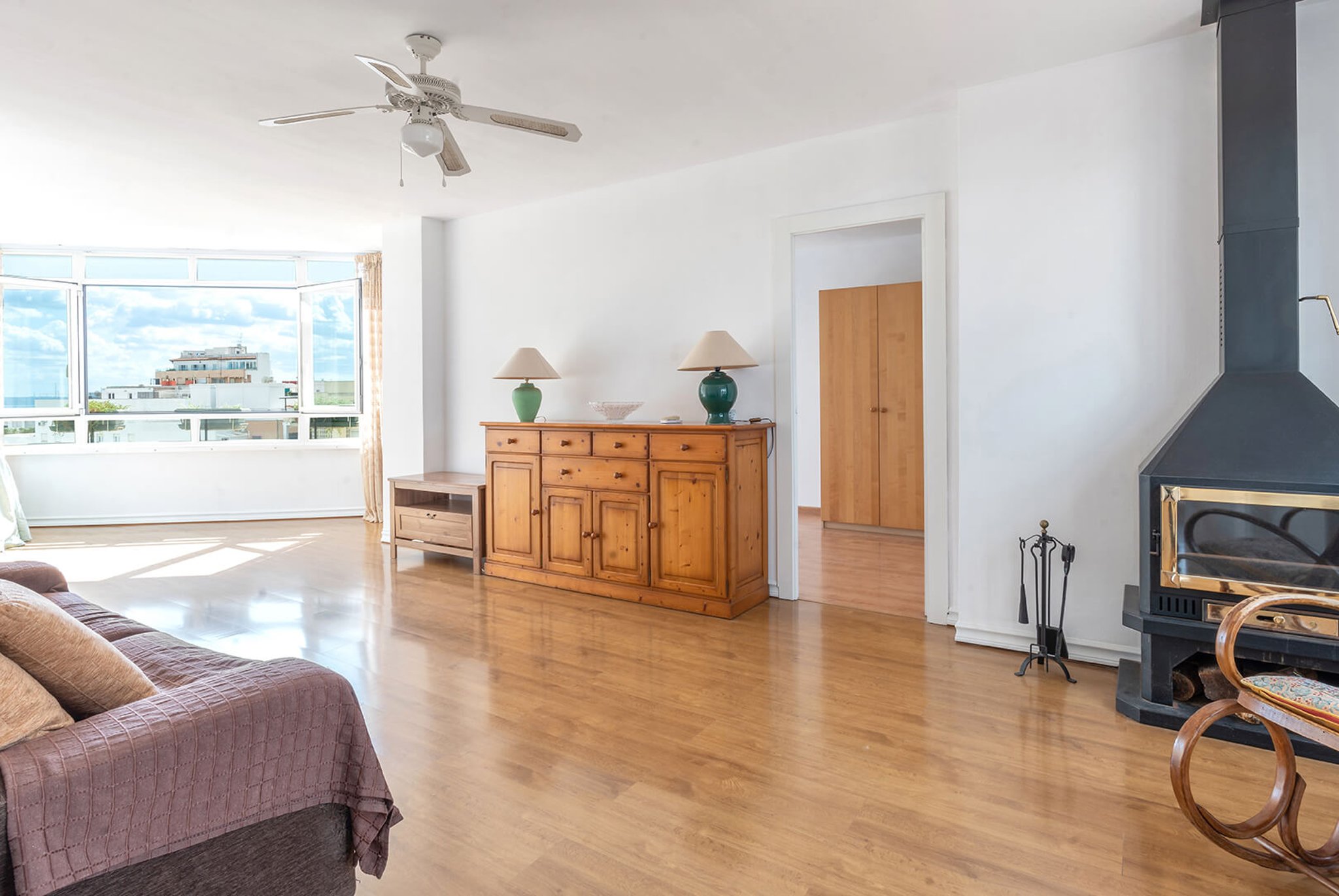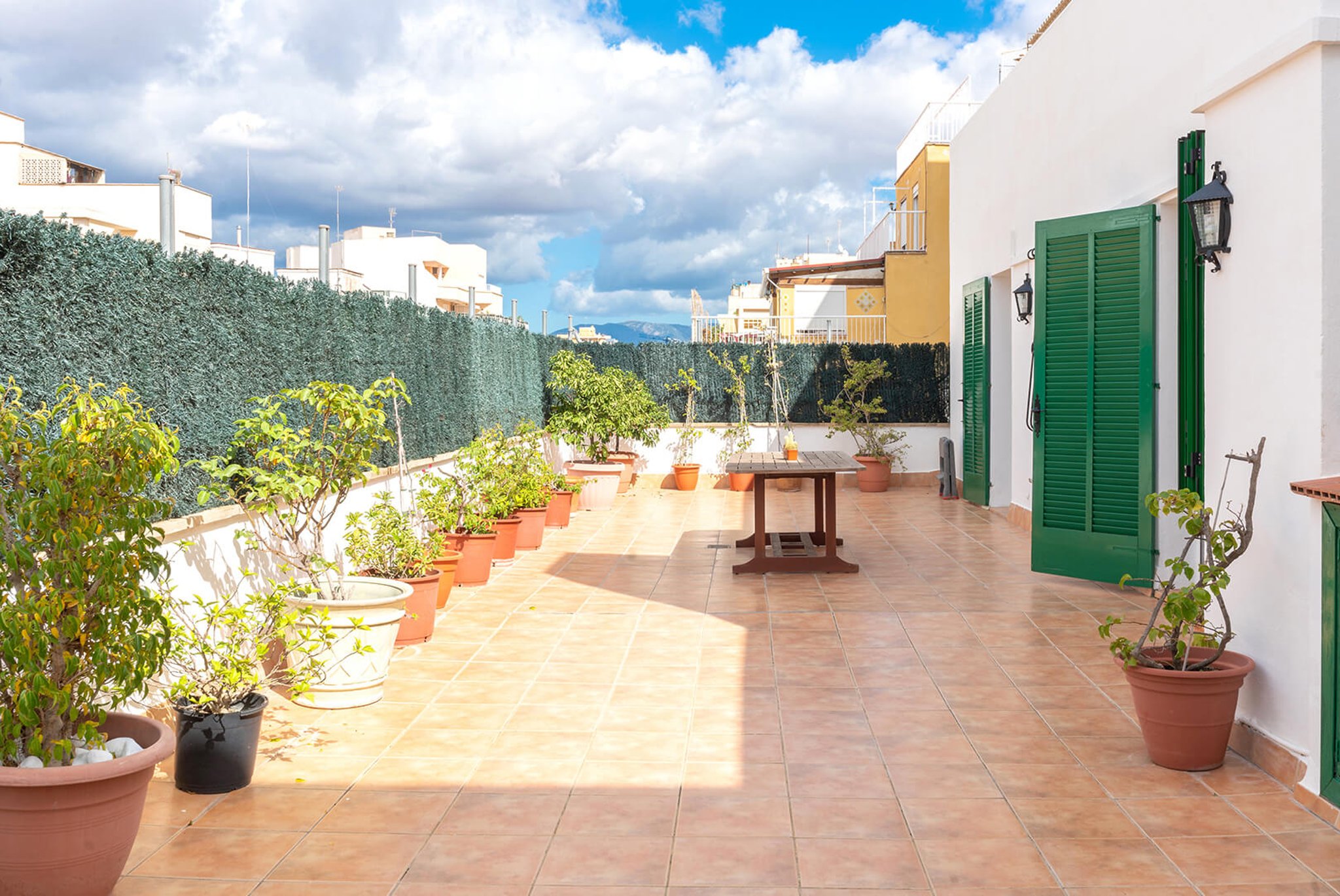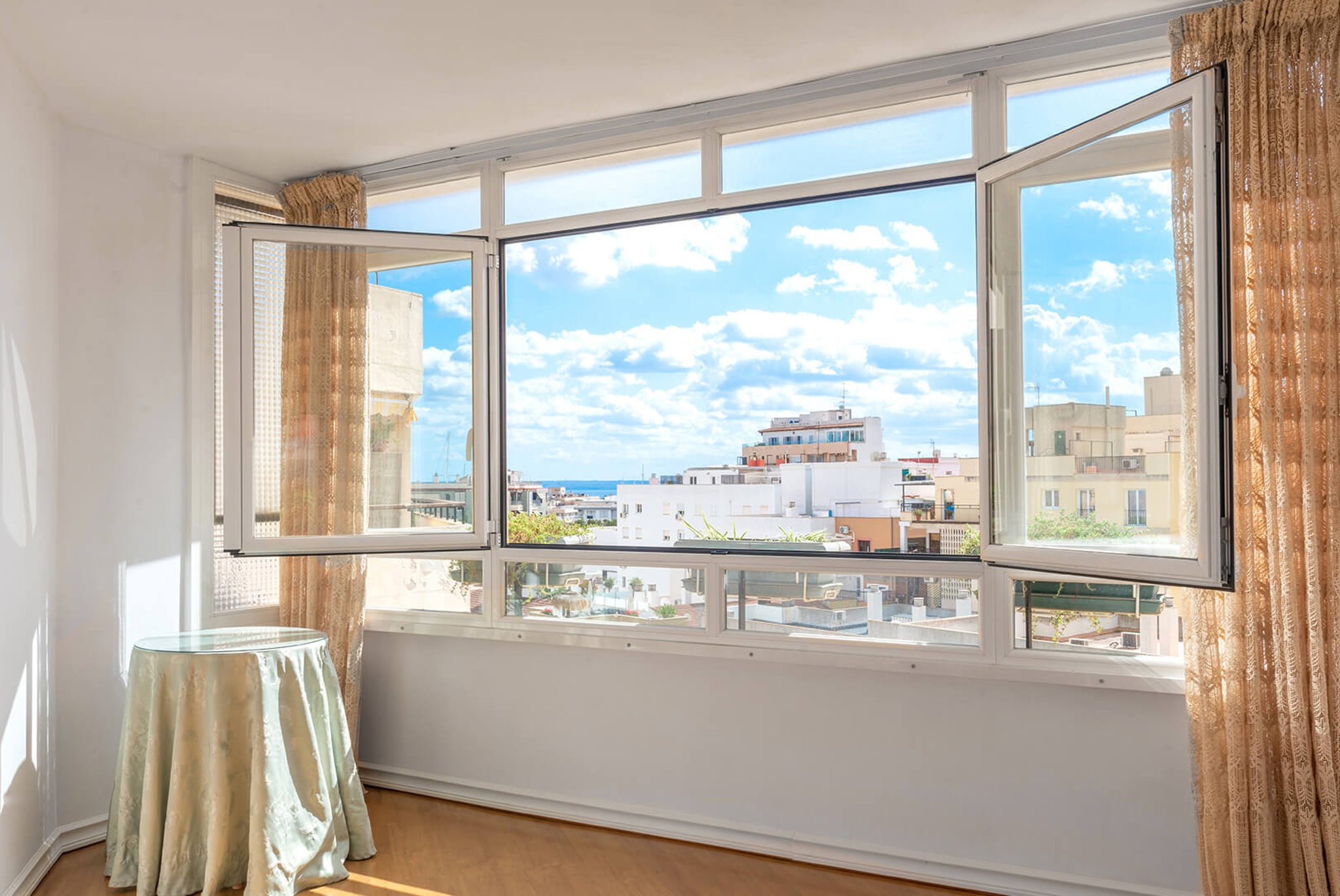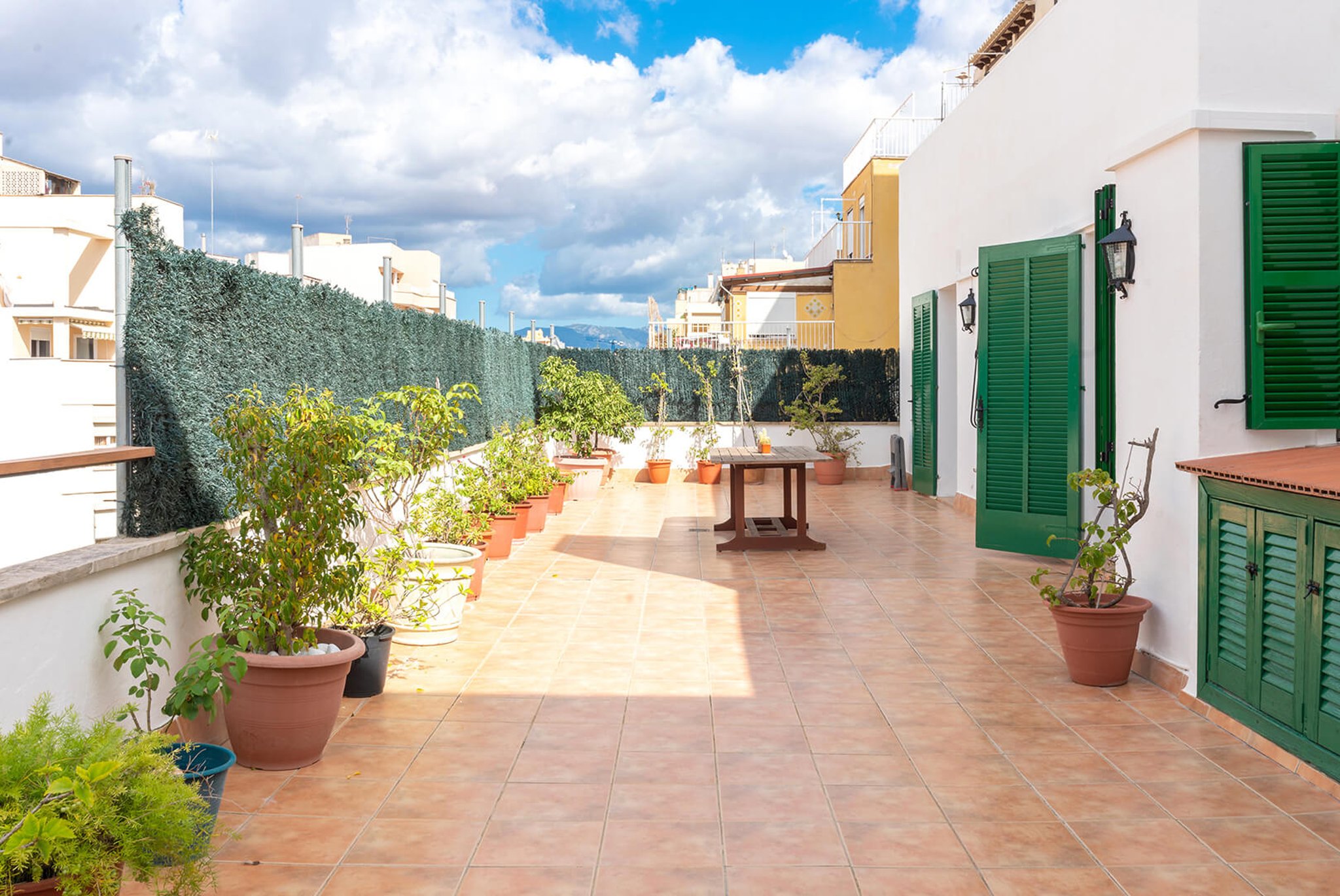 Die Wohnung hat eine Wohnfläche von 75 m2, die sich auf ein Schlafzimmer mit Bad en-suite, ein großes Wohnzimmer mit Essbereich und separater Küche verteilt. Von der Wohnung aus haben Sie einen schönen Blick über die Dächer und können sogar auf das Meer blicken. Die große Terrasse von 80 m2 ist sowohl über das Wohnzimmer als auch von der Küche aus zu erreichen. Von der nach Westen ausgerichteten Terrasse haben Sie einen herrlichen Blick auf die Berge und das Schloss von Bellver. Das nach Süden ausgerichtete Wohnzimmer lässt viel natürliches Licht herein. Die Wohnung braucht ein kleines Update, hat aber großes Potenzial und kann mit kleinen Mitteln in ein Zuhause jenseits der Gewöhnlichkeit verwandelt werden.
