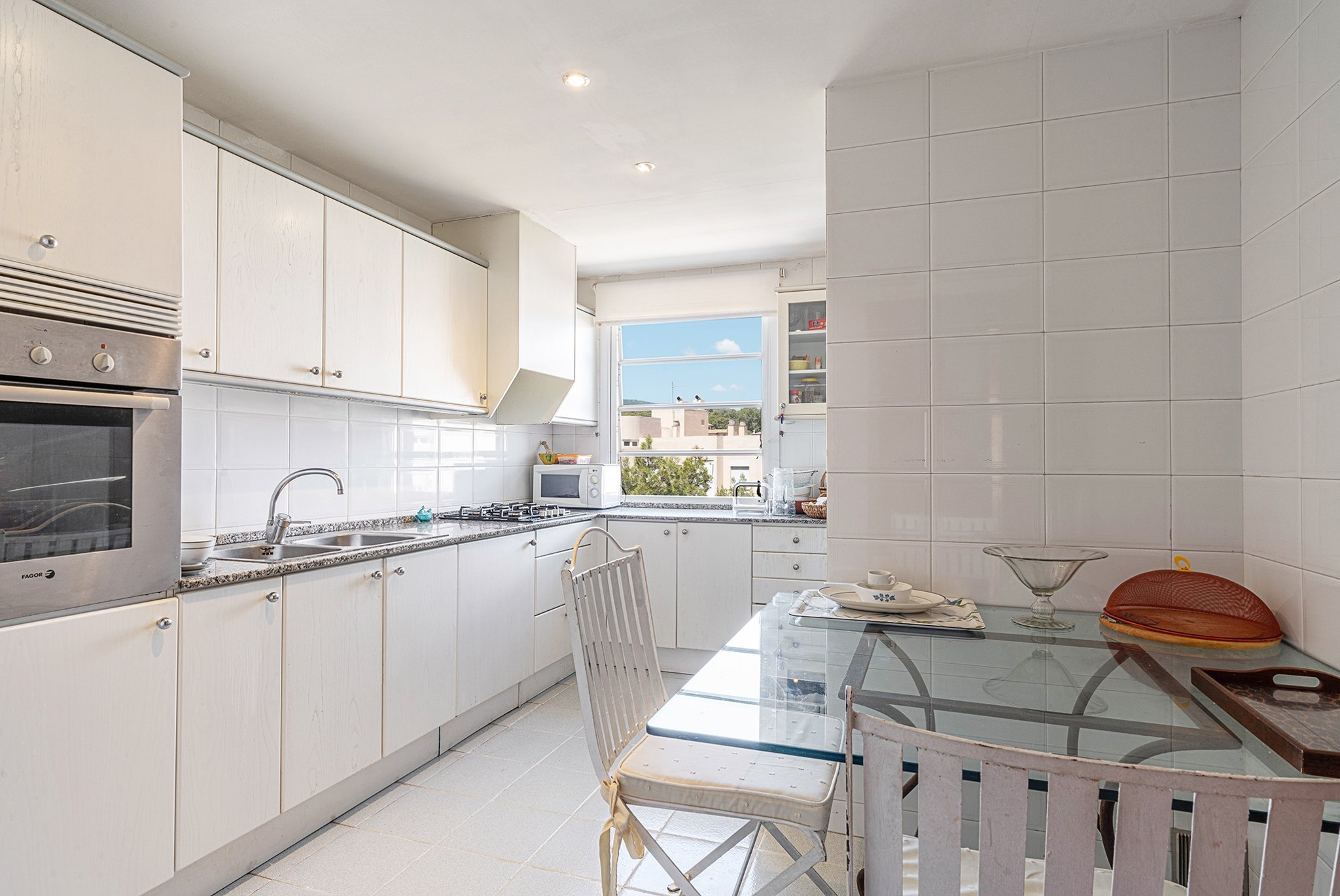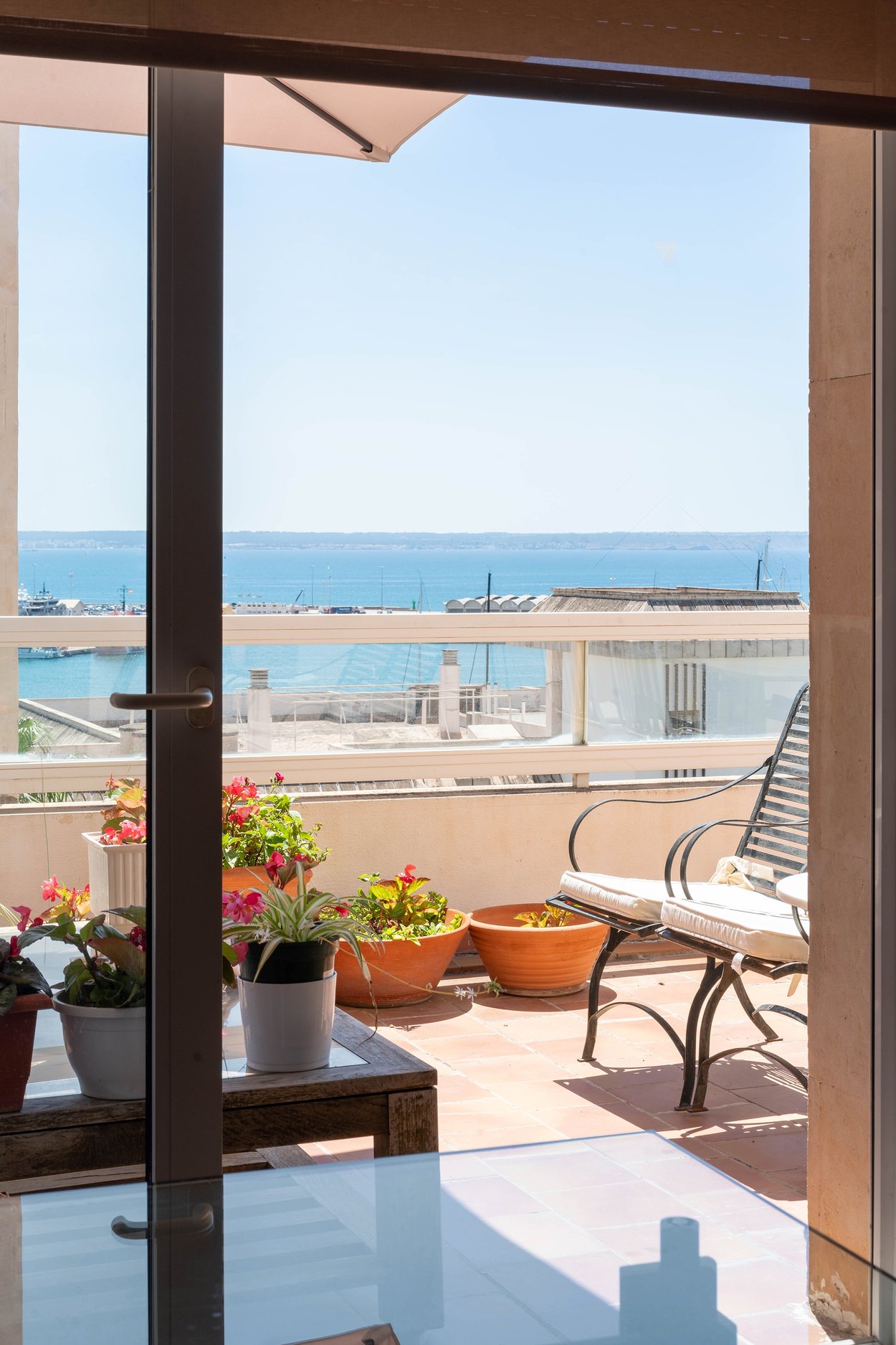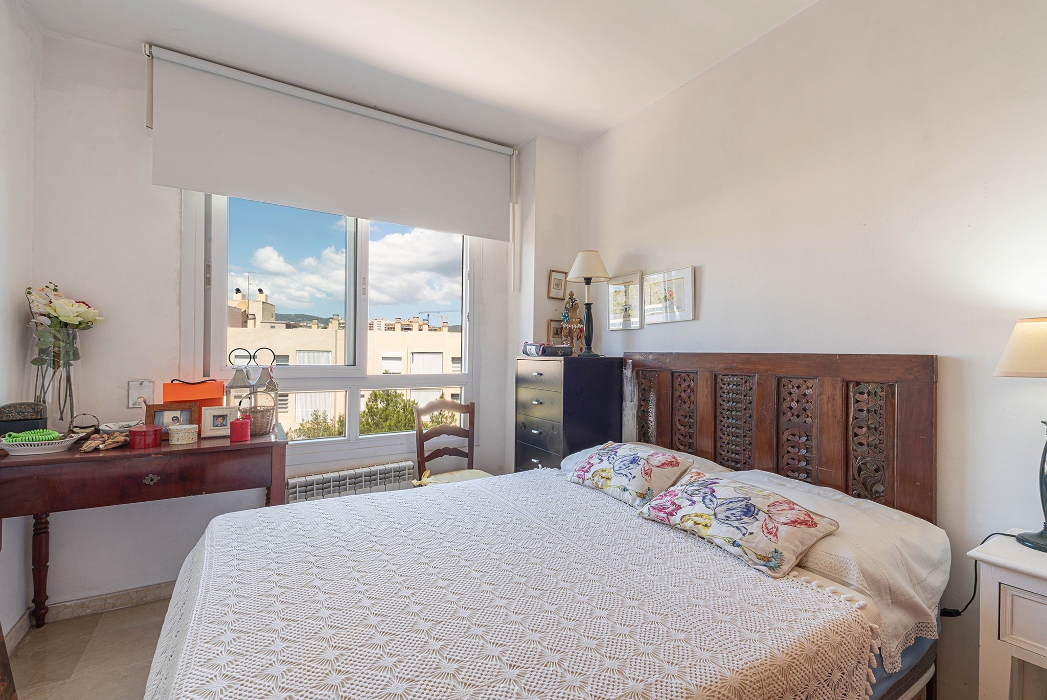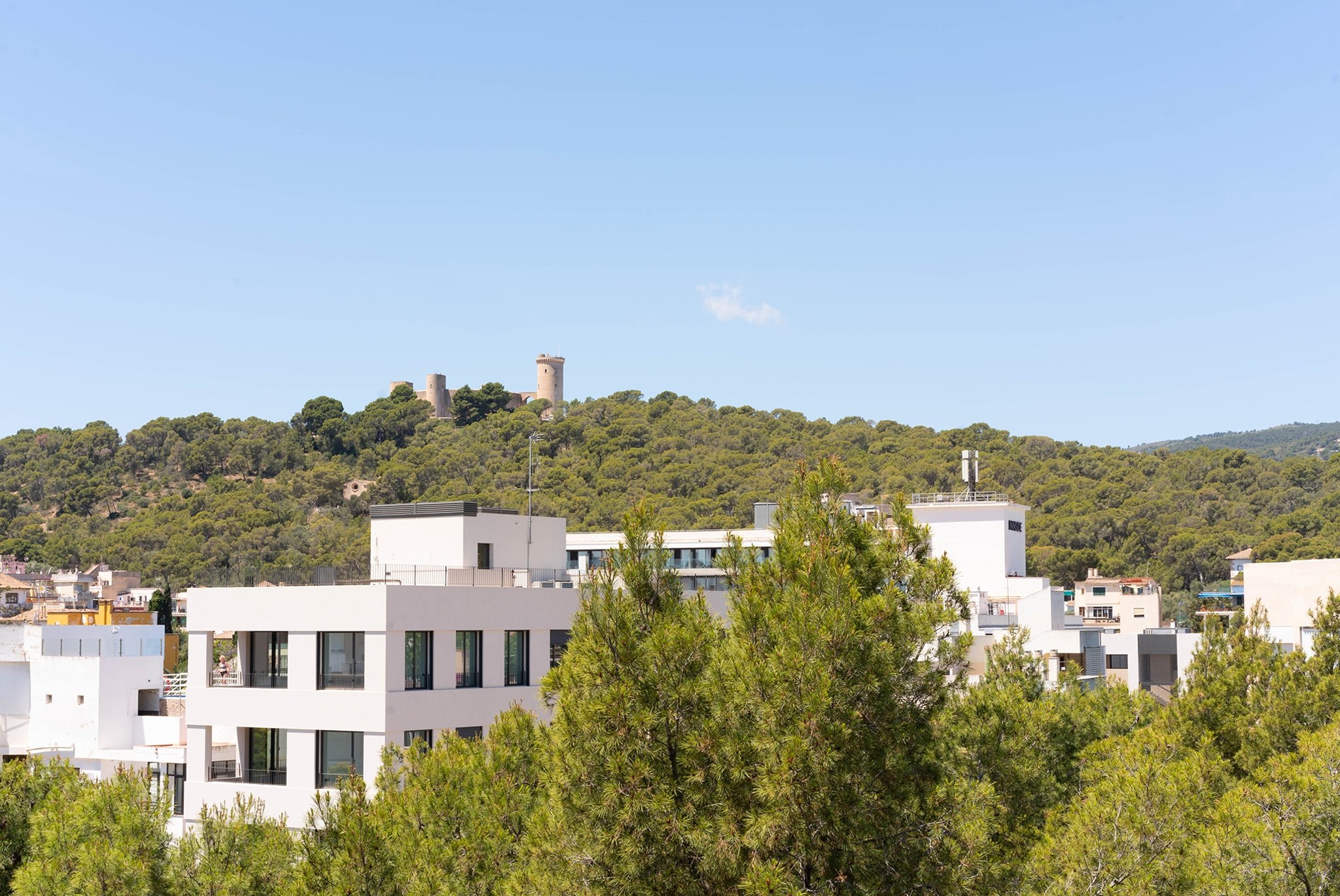 Die Wohnung befindet sich in einem Gebäude aus dem Jahr 1990 und ist in gutem Zustand. Das Wohnzimmer öffnet sich auf eine Terrasse von etwa 50 Quadratmetern mit fantastischem Meerblick. Die Wohnung verfügt über drei Schlafzimmer, eines mit Meerblick und zwei mit Blick auf die Berge und das Schloss Bellver.