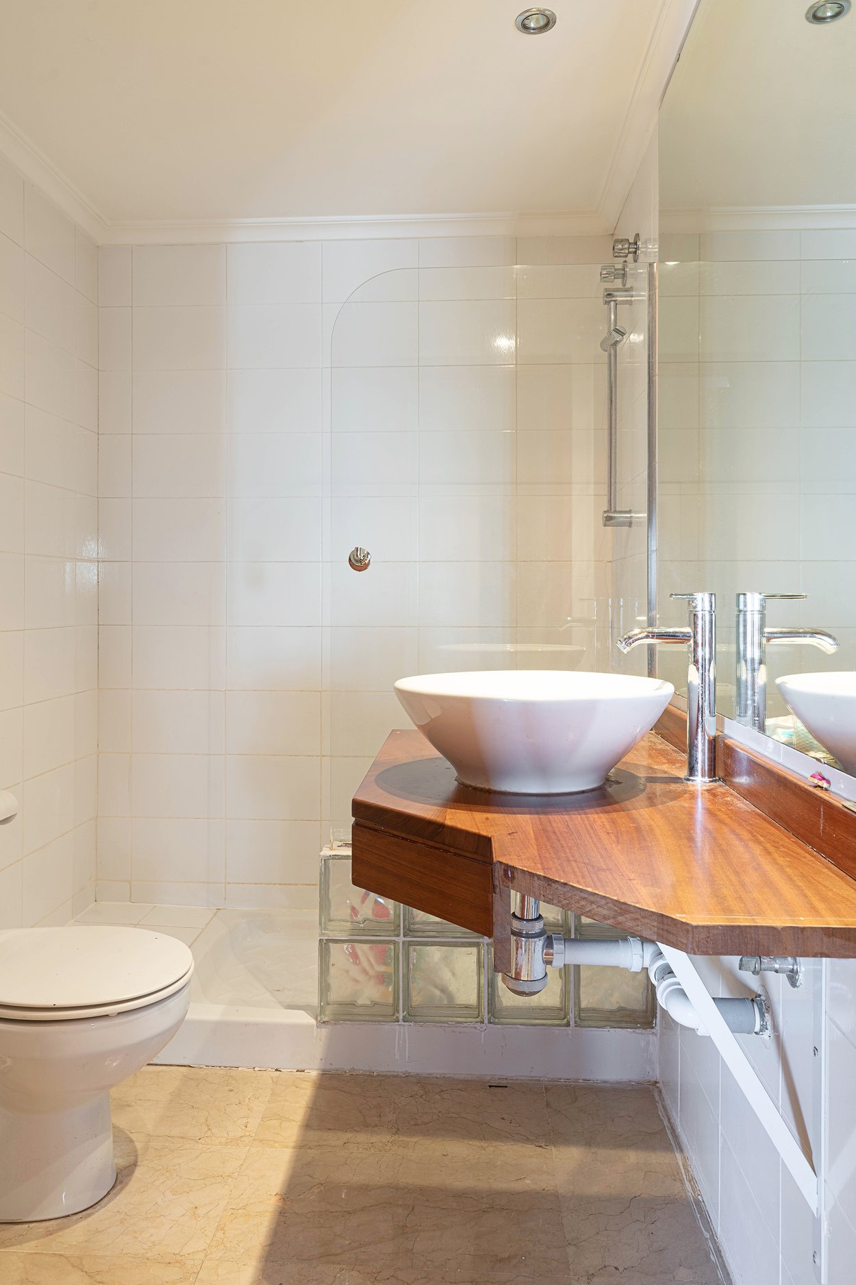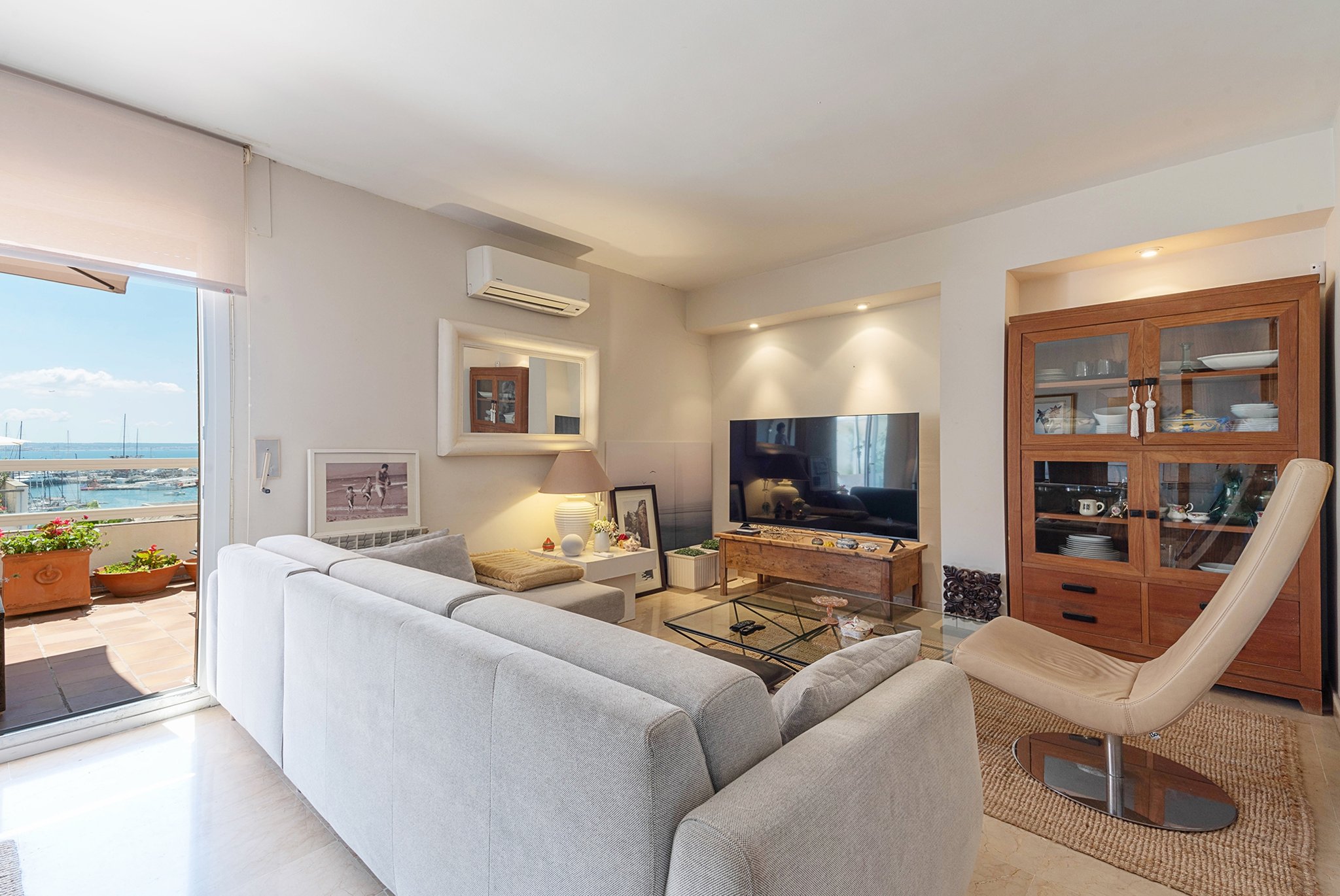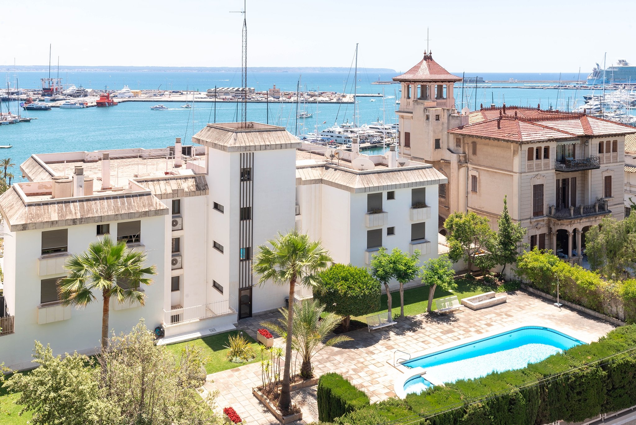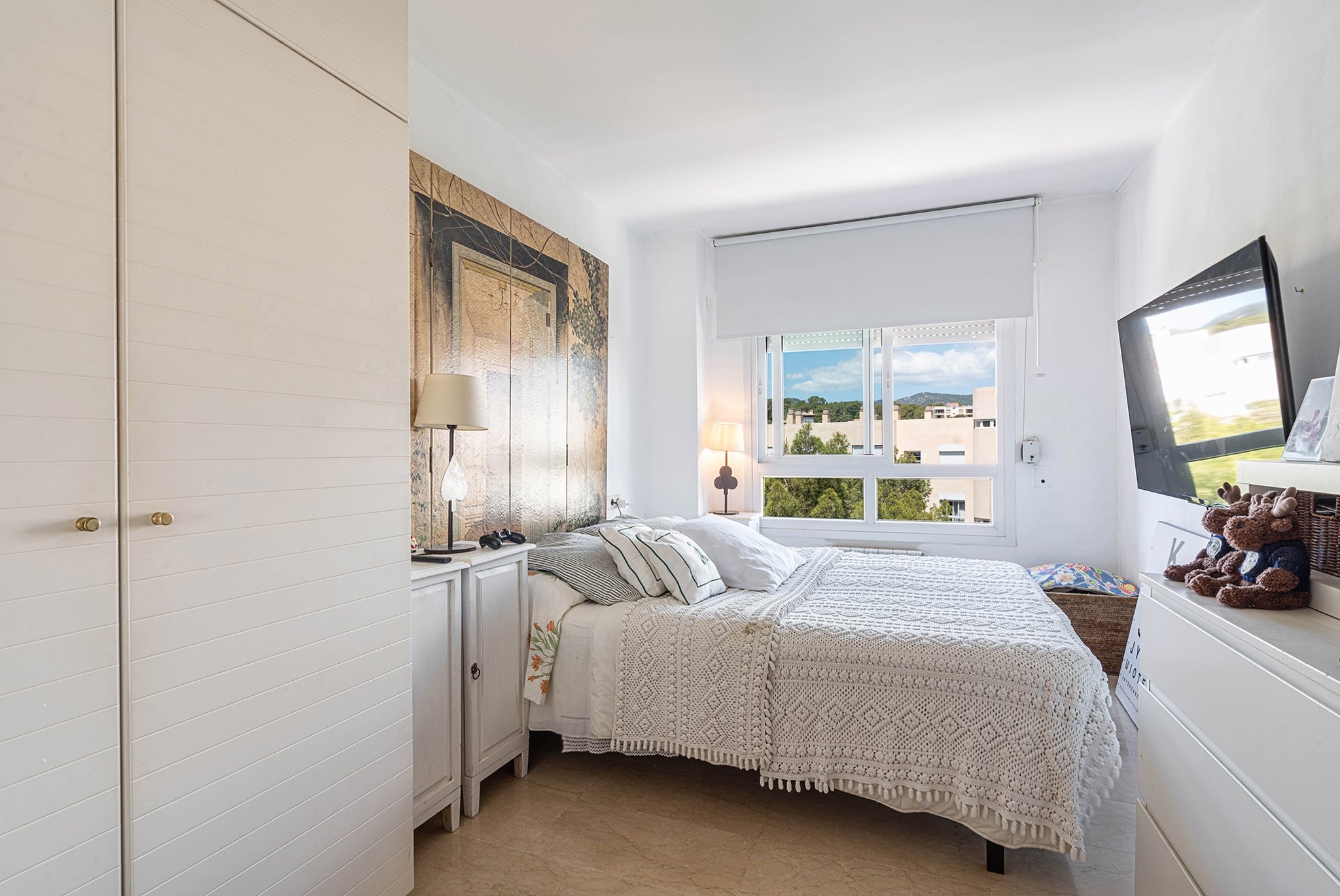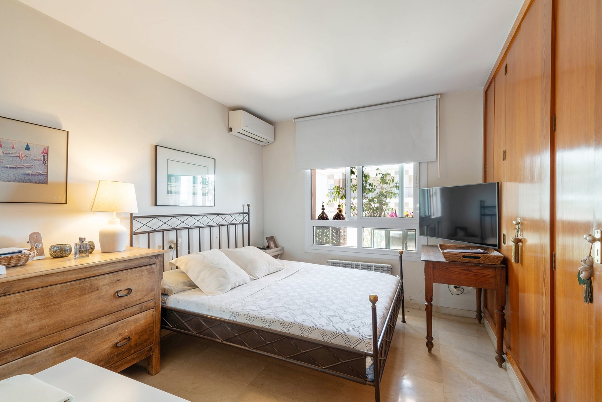 Die Wohnung befindet sich in einem Gebäude aus dem Jahr 1990 und ist in gutem Zustand. Das Wohnzimmer öffnet sich auf eine Terrasse von etwa 50 Quadratmetern mit fantastischem Meerblick. Die Wohnung verfügt über drei Schlafzimmer, eines mit Meerblick und zwei mit Blick auf die Berge und das Schloss Bellver.