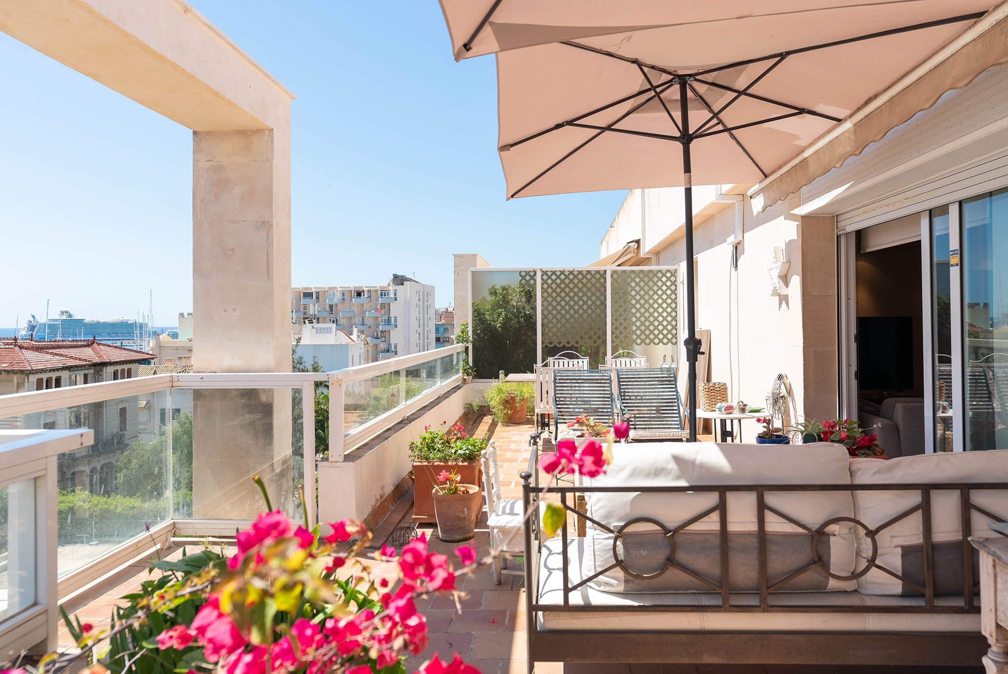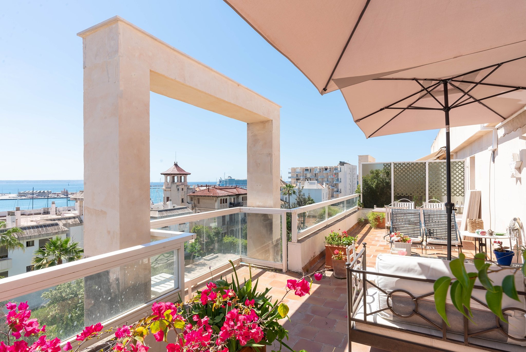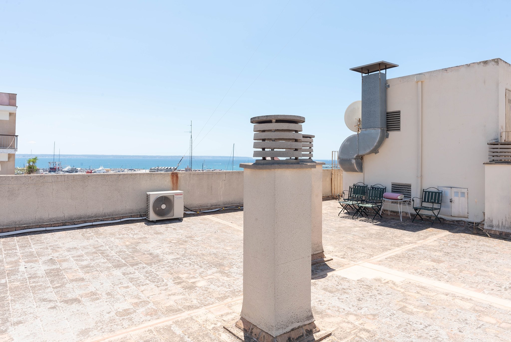 Direkt über der Wohnung befindet sich eine private Dachterrasse von etwa 110 Quadratmetern mit fantastischem Blick auf das Meer und die Berge. Hier setzt nur Ihre Fantasie die Grenzen, wie Sie diesen Raum am besten in Ihre eigene Oase im Zentrum von Palma verwandeln können. Im selben Gebäude befindet sich ein gemieteter Parkplatz, der direkt mit dem Aufzug erreichbar ist.
