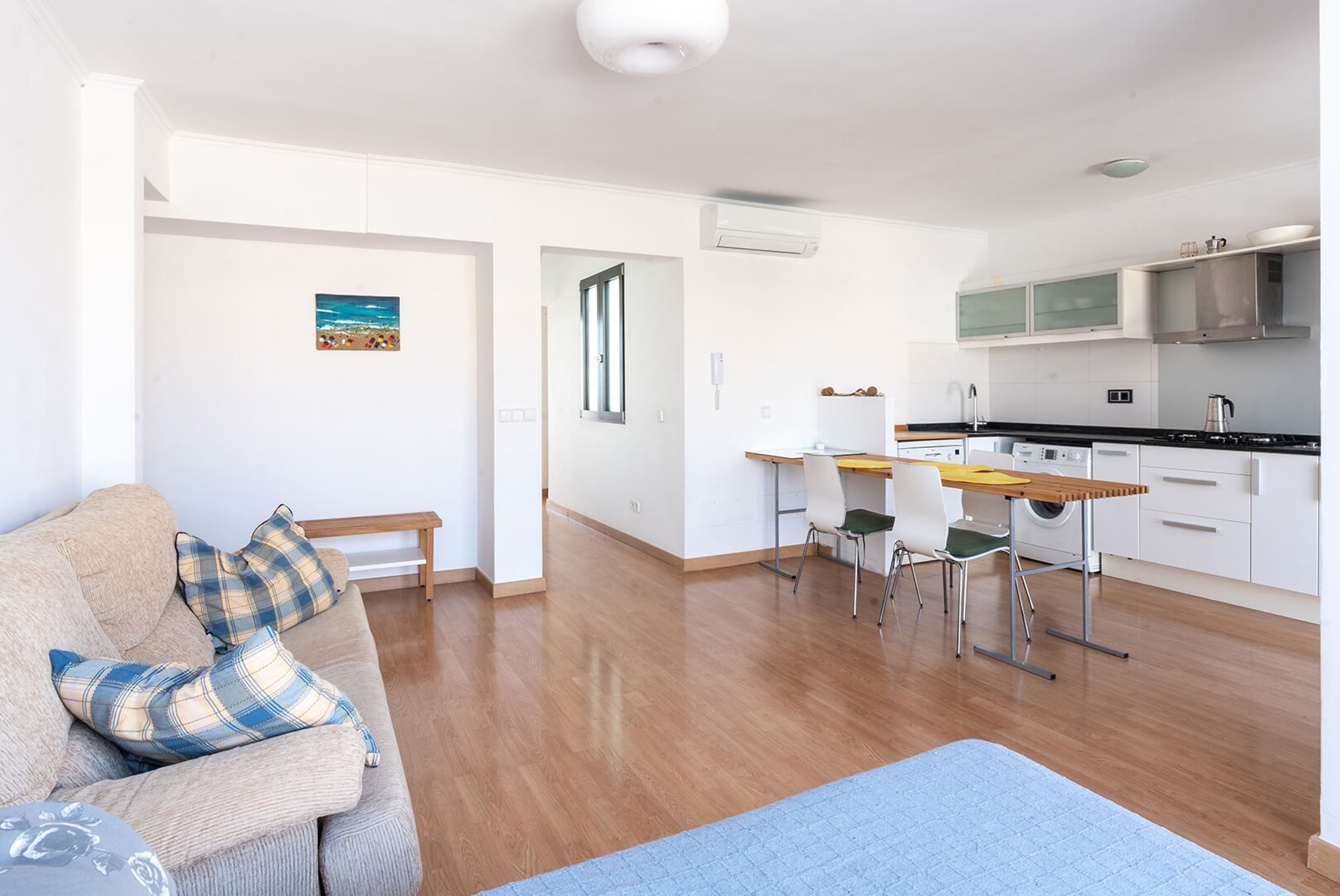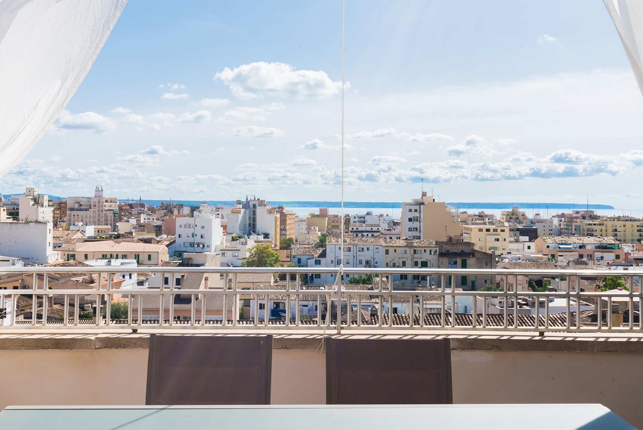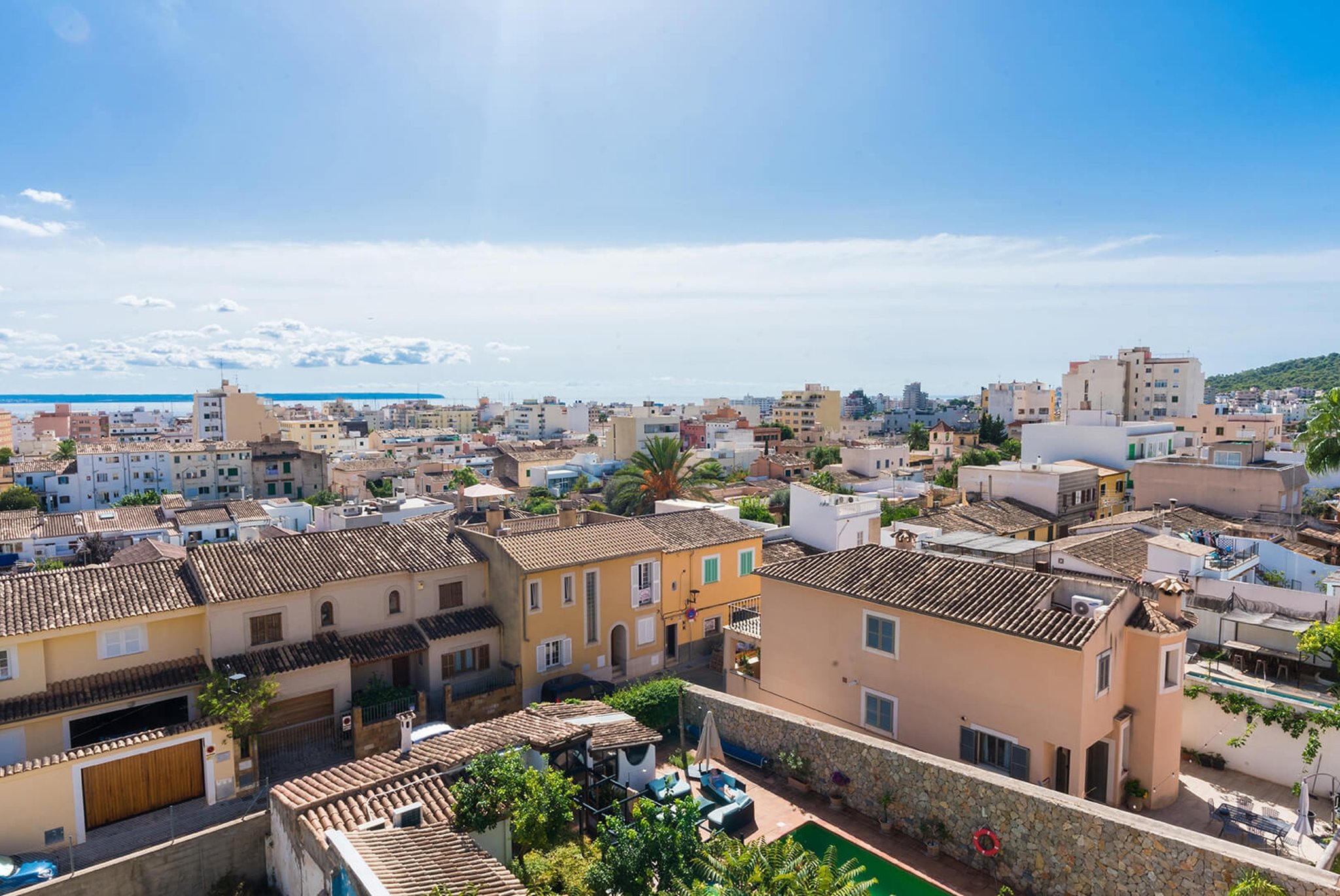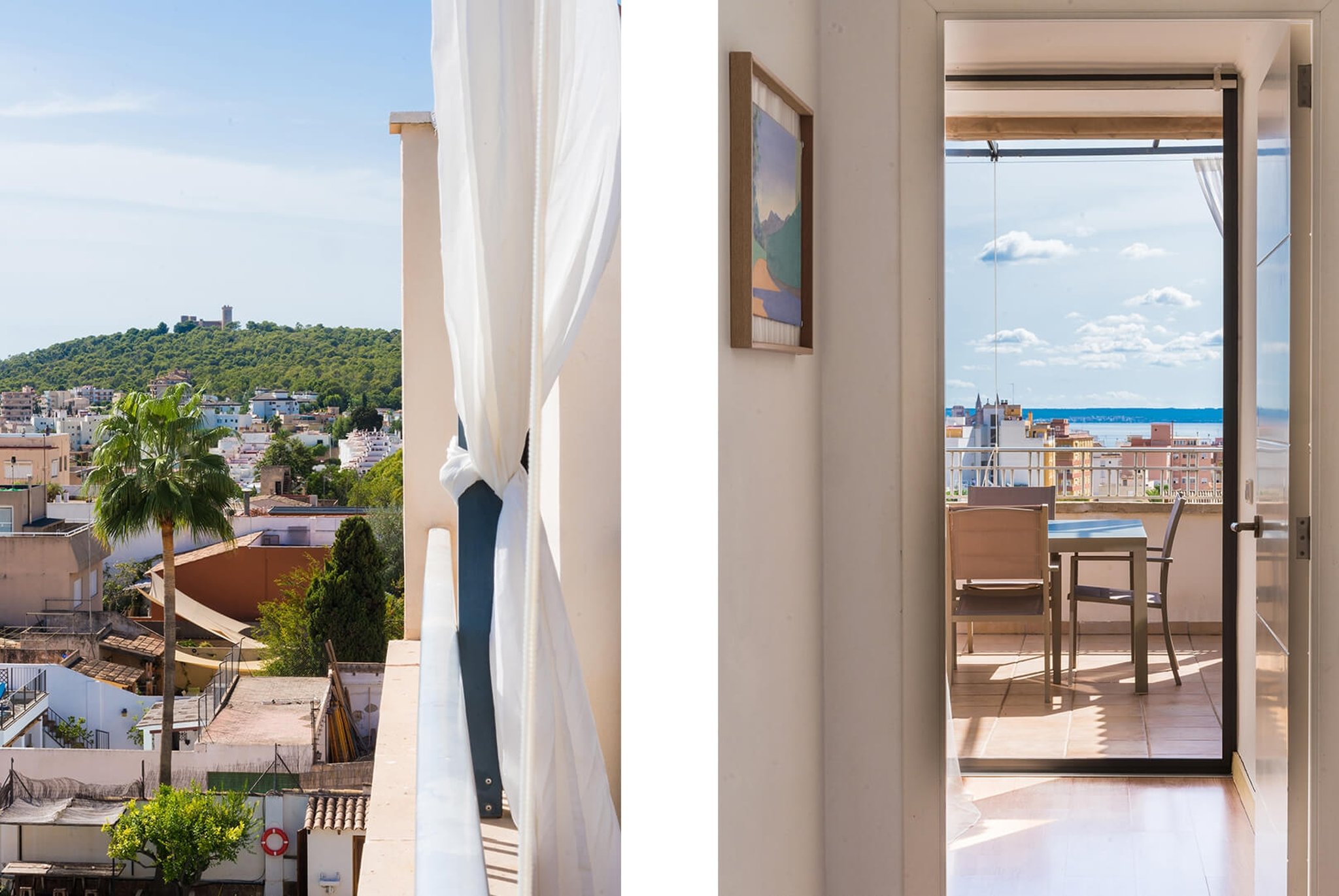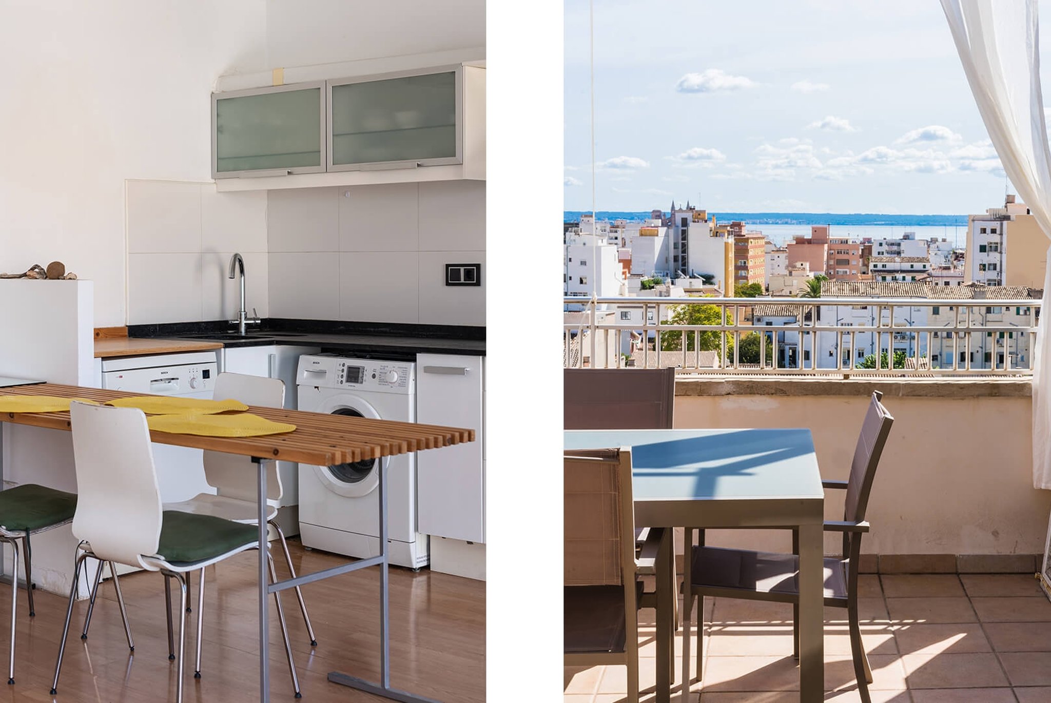 Dieses Penthouse befindet sich in der obersten Etage eines kleinen Gebäudes in einer ruhigen Straße in Son Espanyolet. Die Wohnung hat eine Wohnfläche von 55 m2 plus 36 m2 Terrassen. Es besteht aus einem großzügigen Wohnzimmer mit offener Küche, zwei Schlafzimmern, einem Badezimmer und einem zusätzlichen Raum, der als überdachte Terrasse oder Büroraum genutzt werden kann. Das Highlight dieses Penthouses ist, dass es über zwei große Terrassen verfügt (eine mit 20 m2 und die andere mit 16 m2). Eine Terrasse kann vom Wohnzimmer und Küchenbereich aus betreten werden. Diese Terrasse bietet Blick auf die kleinen Gärten von Son Espanyolet. Die andere Terrasse ist vom Hauptschlafzimmer aus zugänglich und bietet Blick auf das Meer und das Schloss Bellver. Sowohl das Hauptschlafzimmer als auch das Wohnzimmer haben Glasschiebetüren, die ideal sind, wenn Sie den Wohnbereich mit den Terrassen verbinden möchten.