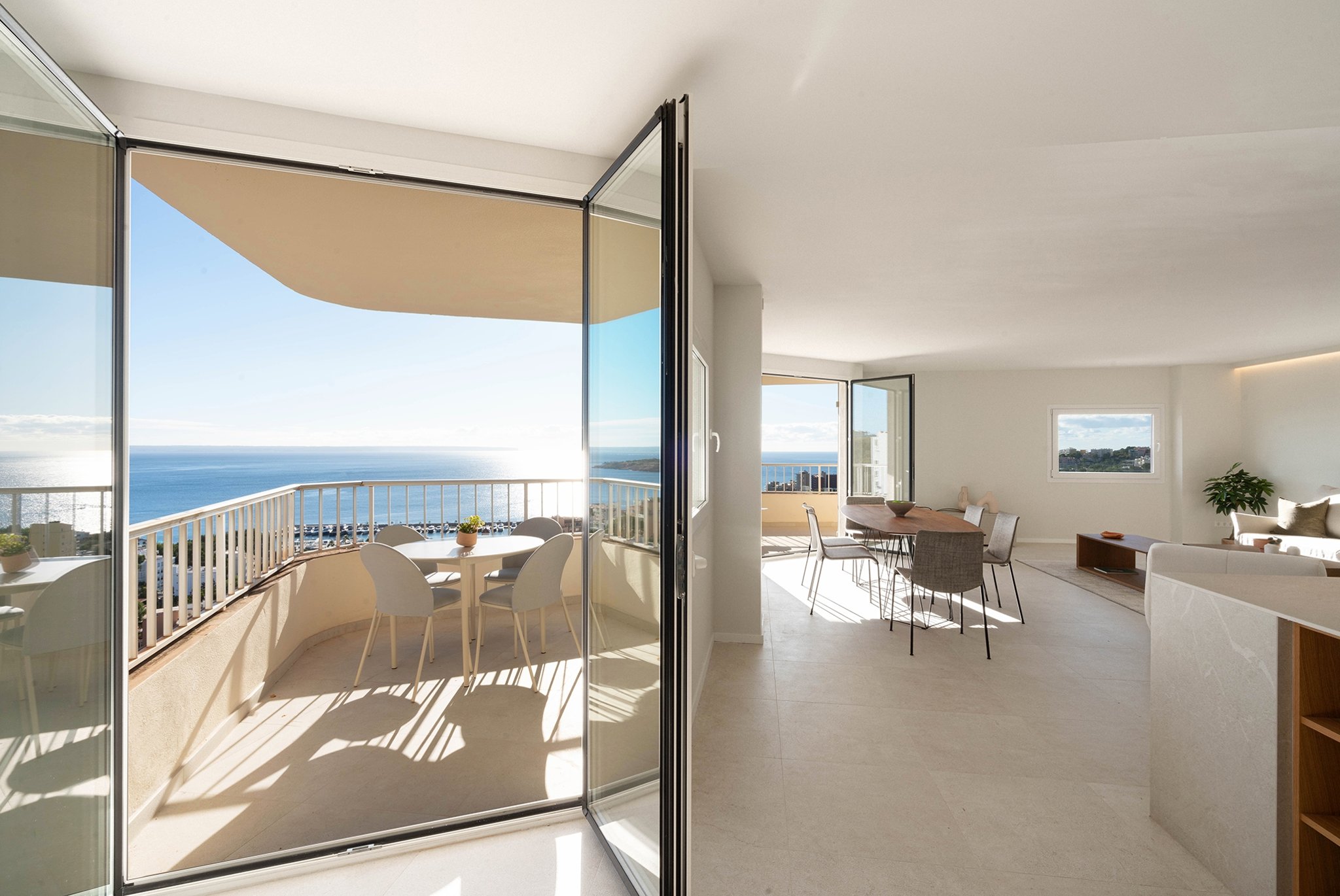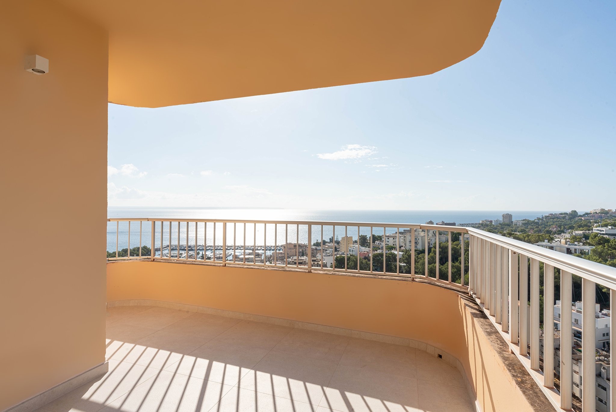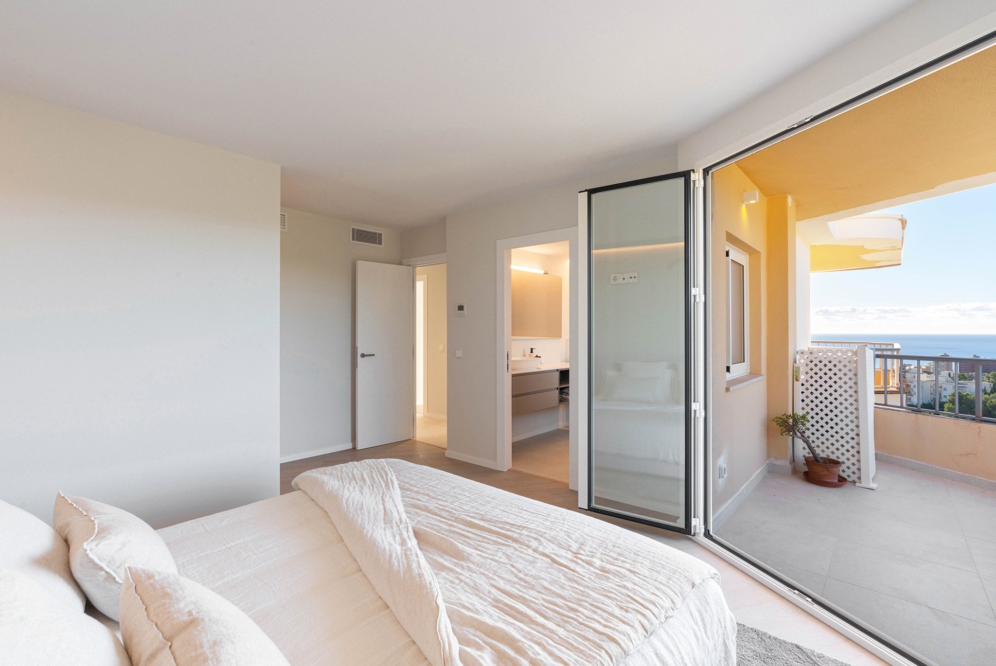 Dieses einzigartige 140 m² große Penthouse wird derzeit renoviert und verfügt über drei geräumige Schlafzimmer mit Einbauschränken und zwei komplette Badezimmer. Der offene Küchen- und Wohnbereich verfügt über große Fenster, die den Raum von allen Seiten mit natürlichem Licht erhellen lassen, während Türen auf zwei Terrassen führen, die einen atemberaubenden Blick auf das Meer, den kleinen Hafen Calanova und die umliegenden Grünflächen bieten. Es gibt 2 zusätzliche Terrassen, die jeweils mit einem Schlafzimmer verbunden sind, sodass Sie vom ersten Moment an die Aussicht genießen können. Ein Aufzug bietet direkten Zugang zur Gemeinschaftsterrasse und zum Poolbereich für ein erfrischendes Bad. Darüber hinaus verfügt die Immobilie über zwei großzügige private Lagerräume und einen ausgewiesenen Parkplatz.