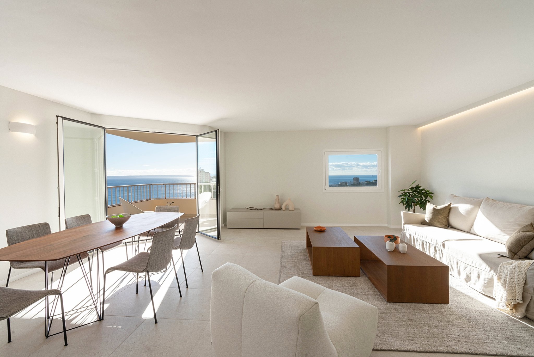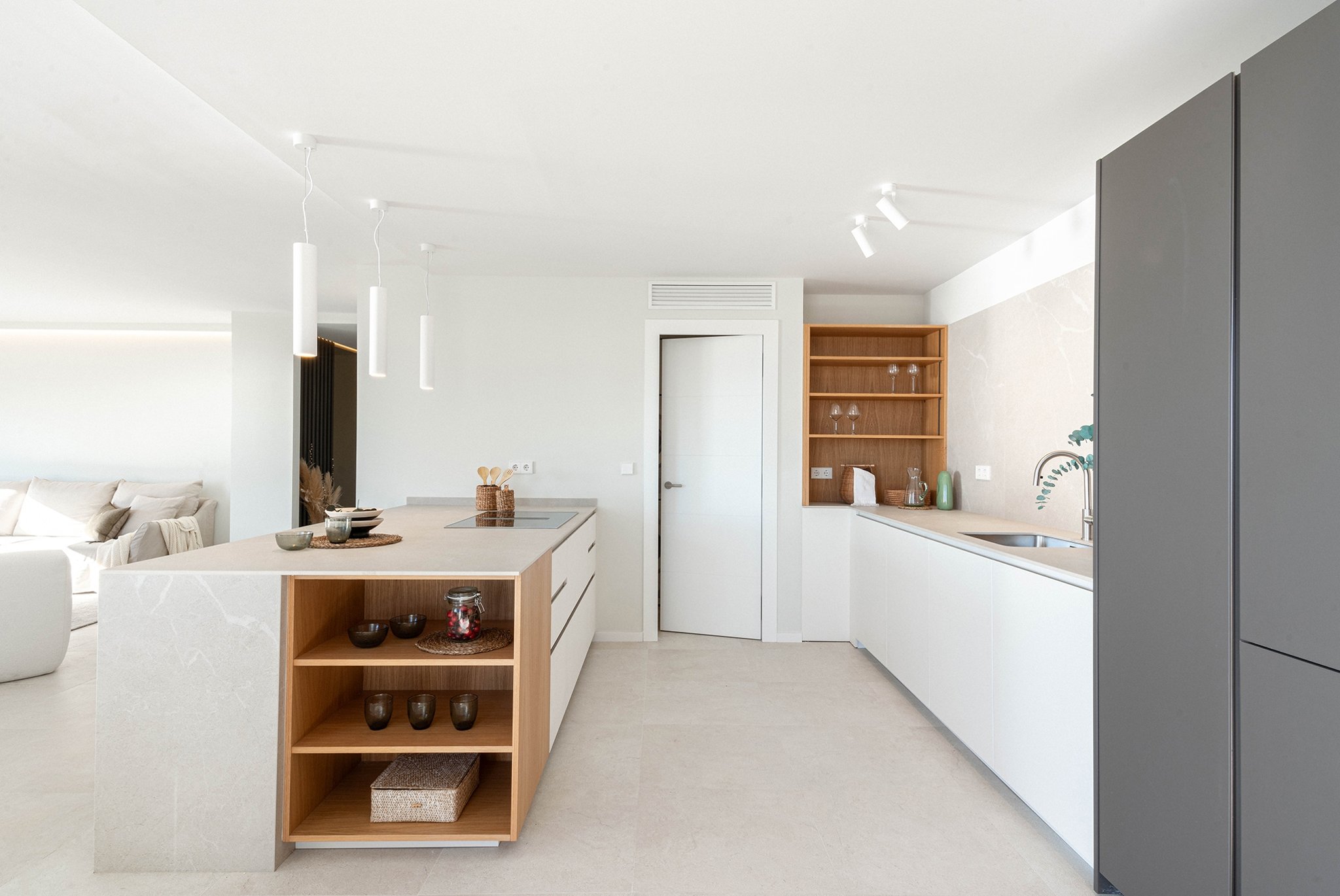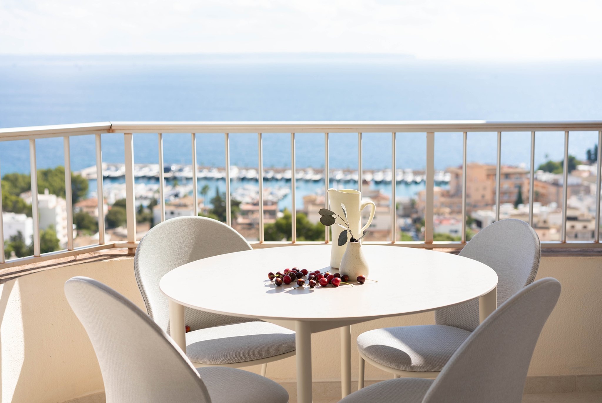 Dieses einzigartige 140 m² große Penthouse wird derzeit renoviert und verfügt über drei geräumige Schlafzimmer mit Einbauschränken und zwei komplette Badezimmer. Der offene Küchen- und Wohnbereich verfügt über große Fenster, die den Raum von allen Seiten mit natürlichem Licht erhellen lassen, während Türen auf zwei Terrassen führen, die einen atemberaubenden Blick auf das Meer, den kleinen Hafen Calanova und die umliegenden Grünflächen bieten. Es gibt 2 zusätzliche Terrassen, die jeweils mit einem Schlafzimmer verbunden sind, sodass Sie vom ersten Moment an die Aussicht genießen können. Ein Aufzug bietet direkten Zugang zur Gemeinschaftsterrasse und zum Poolbereich für ein erfrischendes Bad. Darüber hinaus verfügt die Immobilie über zwei großzügige private Lagerräume und einen ausgewiesenen Parkplatz.