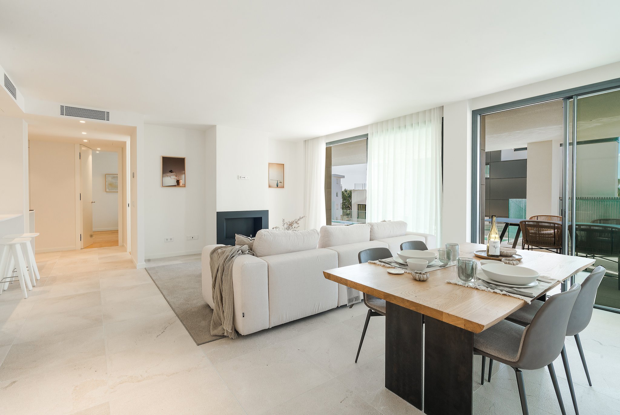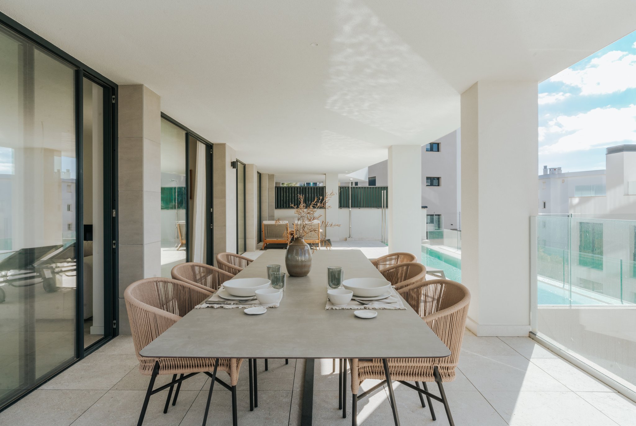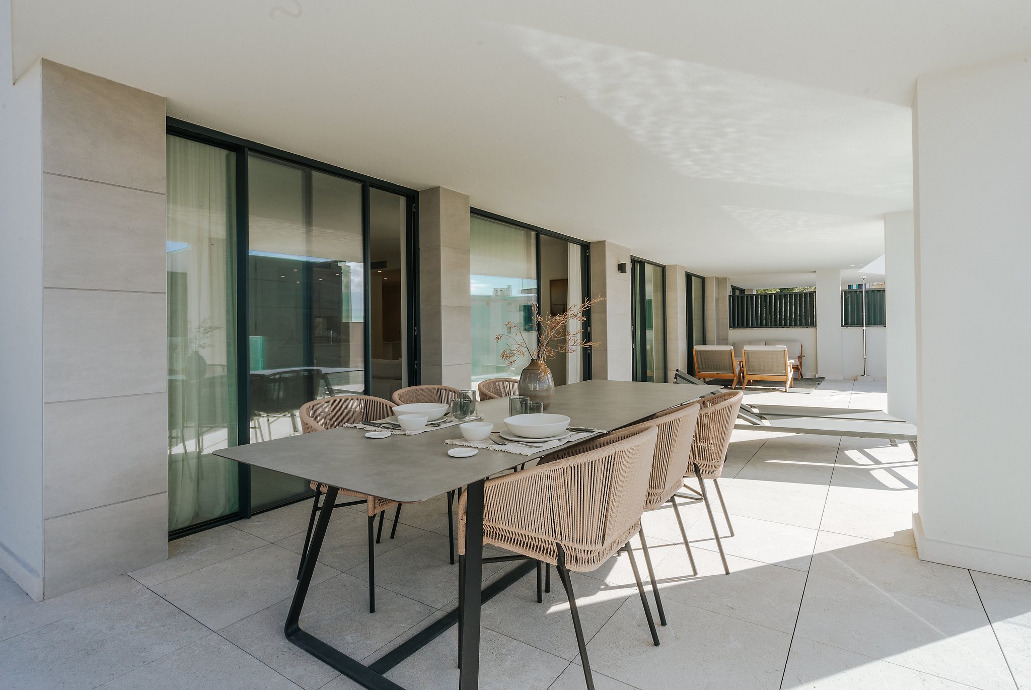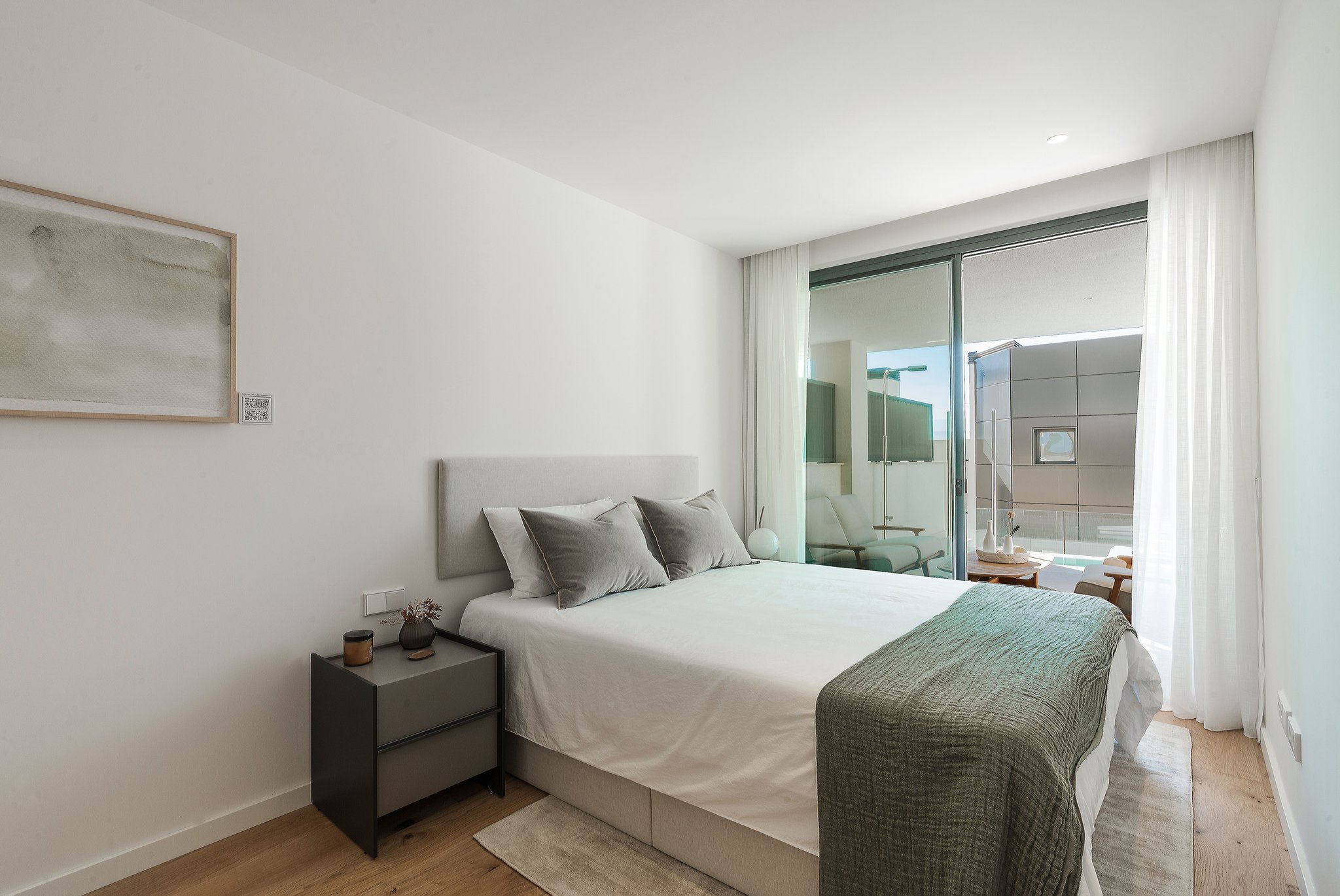 Die Wohnung befindet sich in einer Luxuswohnanlage mit insgesamt 37 Wohnungen. Die ausgewählten Materialien sind von höchster Qualität und von namhaften Marken wie Küchengeräte von Siemens, Klimaanlage von Airzone Lite, Parkettböden in den Schlafzimmern und graue Steinfliesen in Wohn- und Essbereich, Nasszelle und Flur. Das Design ist modern und minimalistisch gehalten mit Liebe zum Detail. Alle Bewohner können die schönen Gemeinschaftsgärten mit einheimischen Pflanzen sowie den gemeinschaftlichen Infinity-Pool mit Sonnenterrasse genießen.