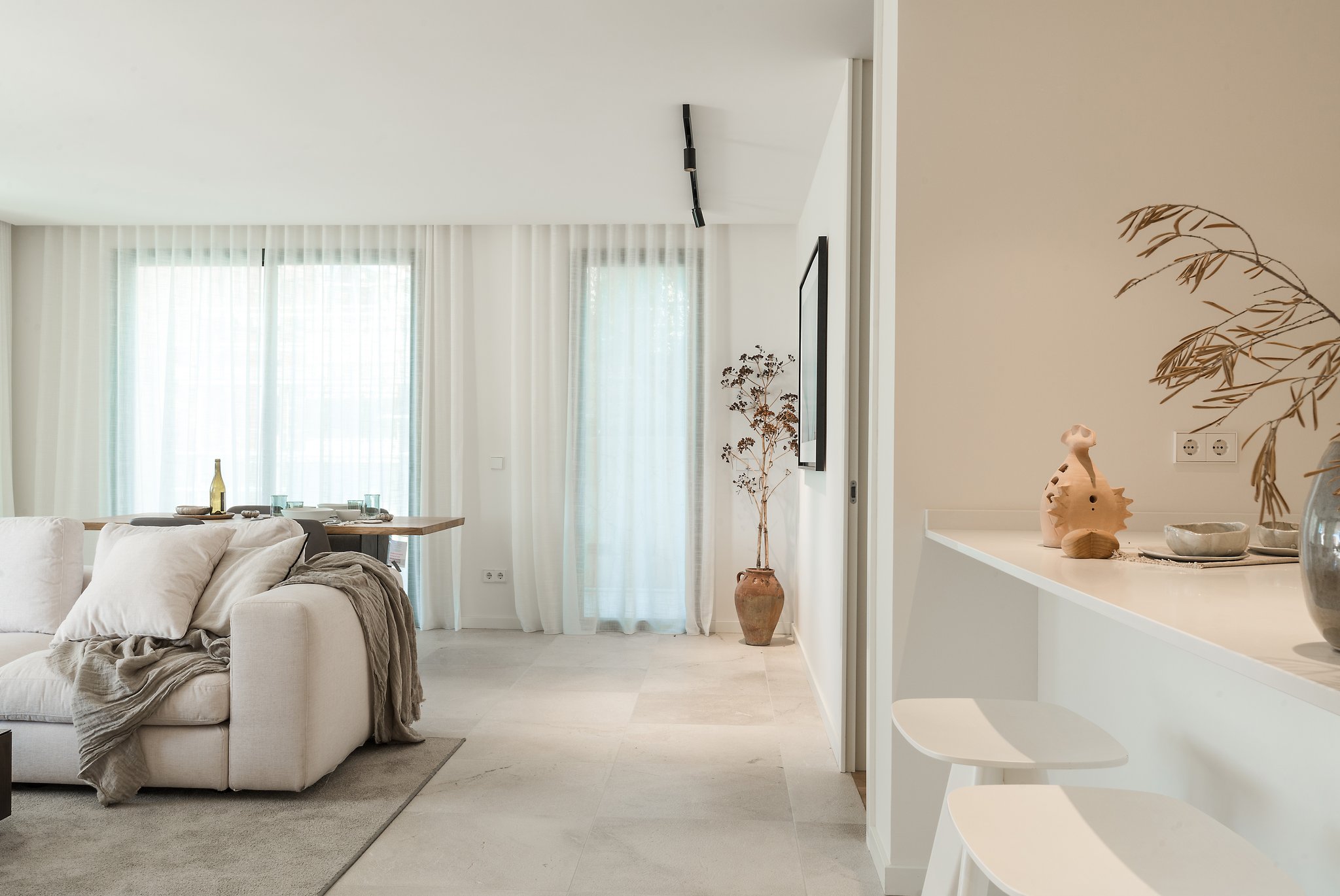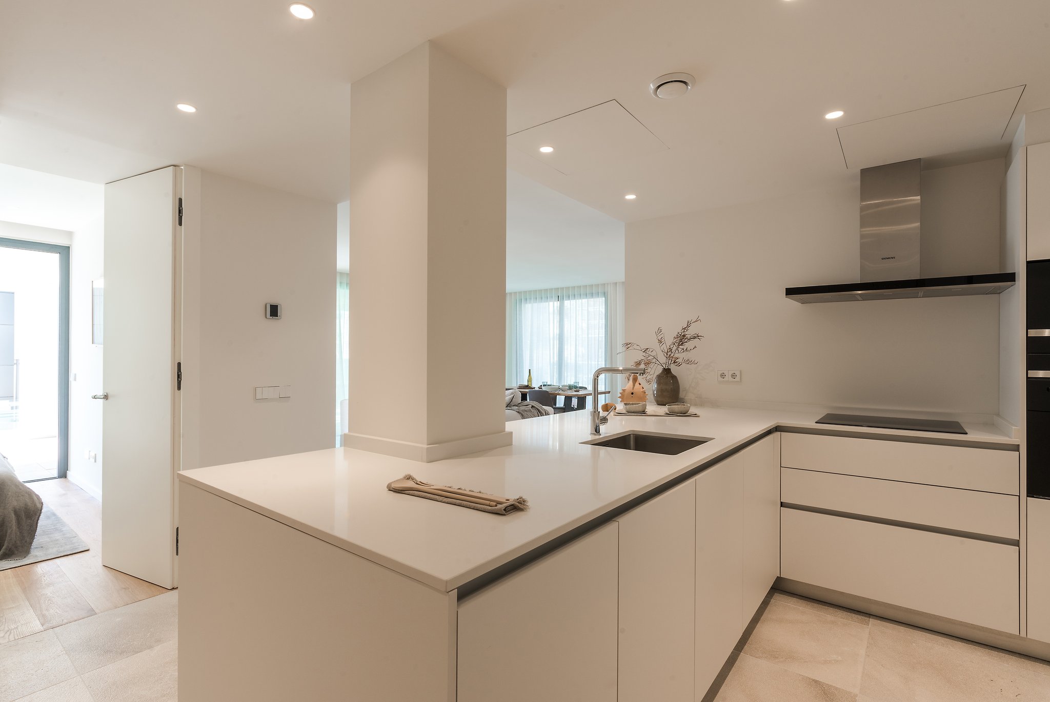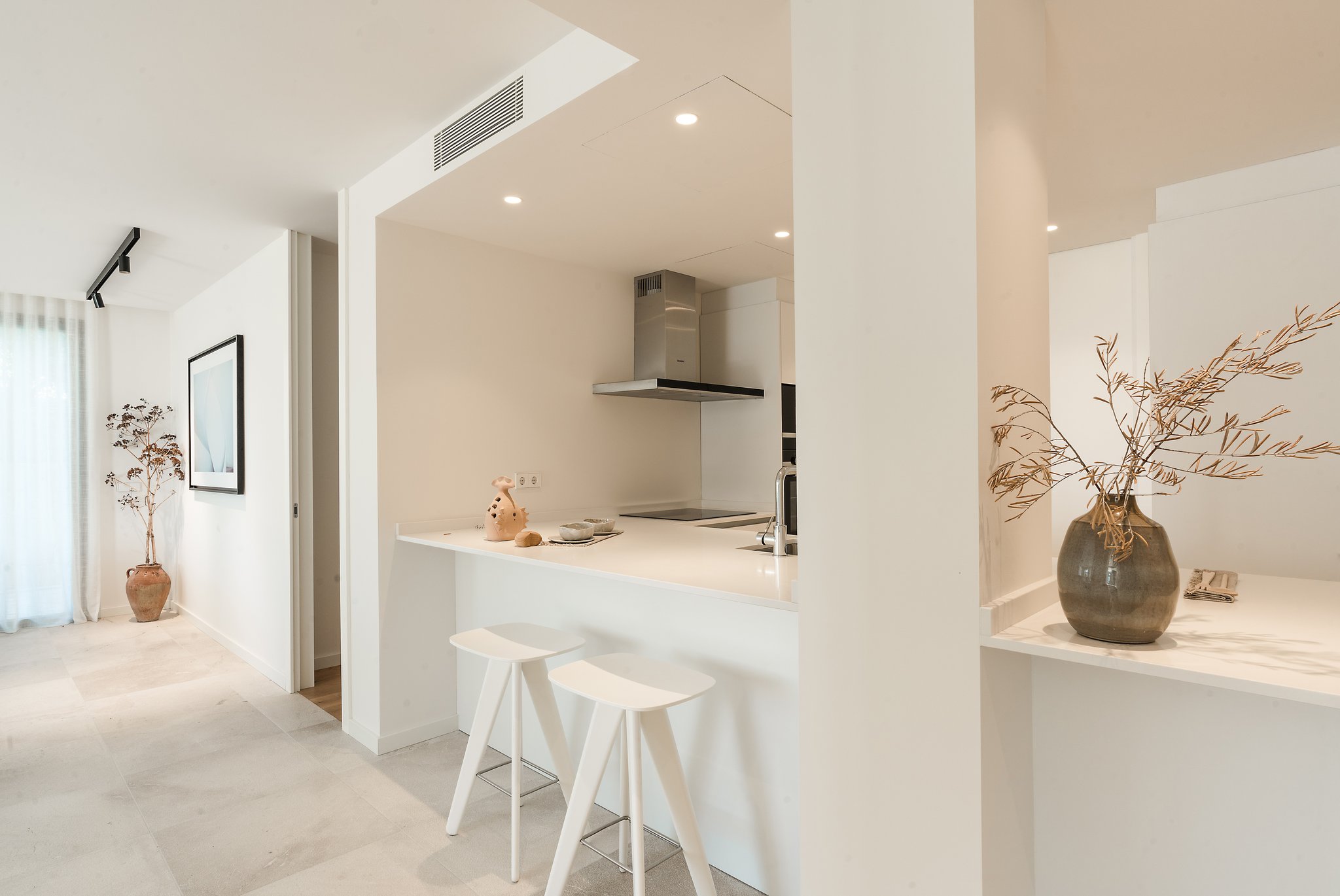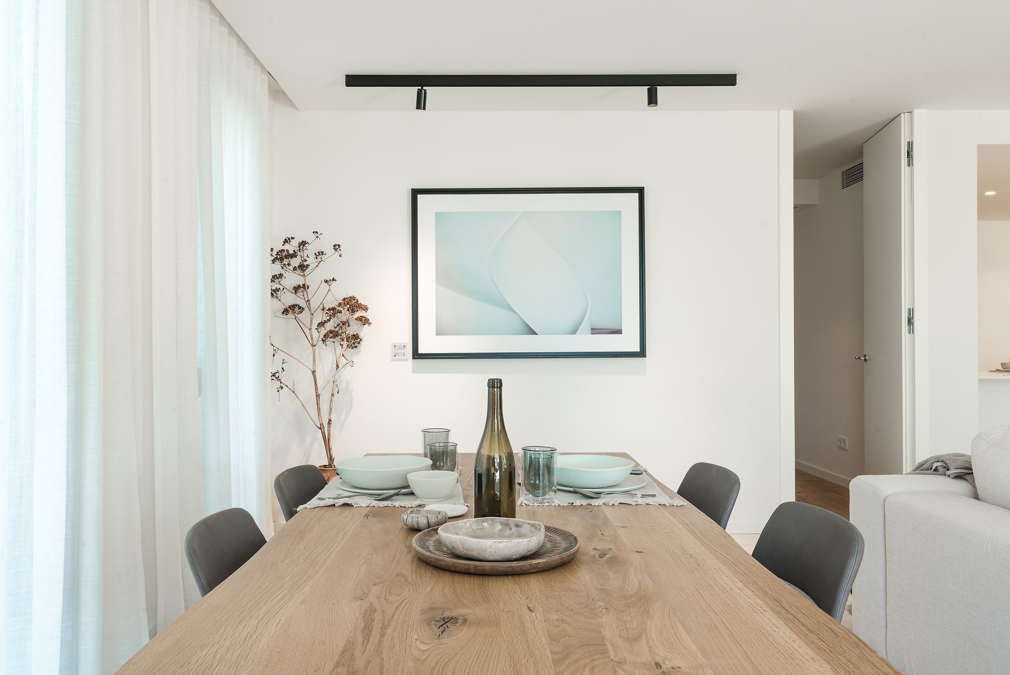 Die Wohnung befindet sich in einer Luxuswohnanlage mit insgesamt 37 Wohnungen. Die ausgewählten Materialien sind von höchster Qualität und von namhaften Marken wie Küchengeräte von Siemens, Klimaanlage von Airzone Lite, Parkettböden in den Schlafzimmern und graue Steinfliesen in Wohn- und Essbereich, Nasszelle und Flur. Das Design ist modern und minimalistisch gehalten mit Liebe zum Detail. Alle Bewohner können die schönen Gemeinschaftsgärten mit einheimischen Pflanzen sowie den gemeinschaftlichen Infinity-Pool mit Sonnenterrasse genießen.