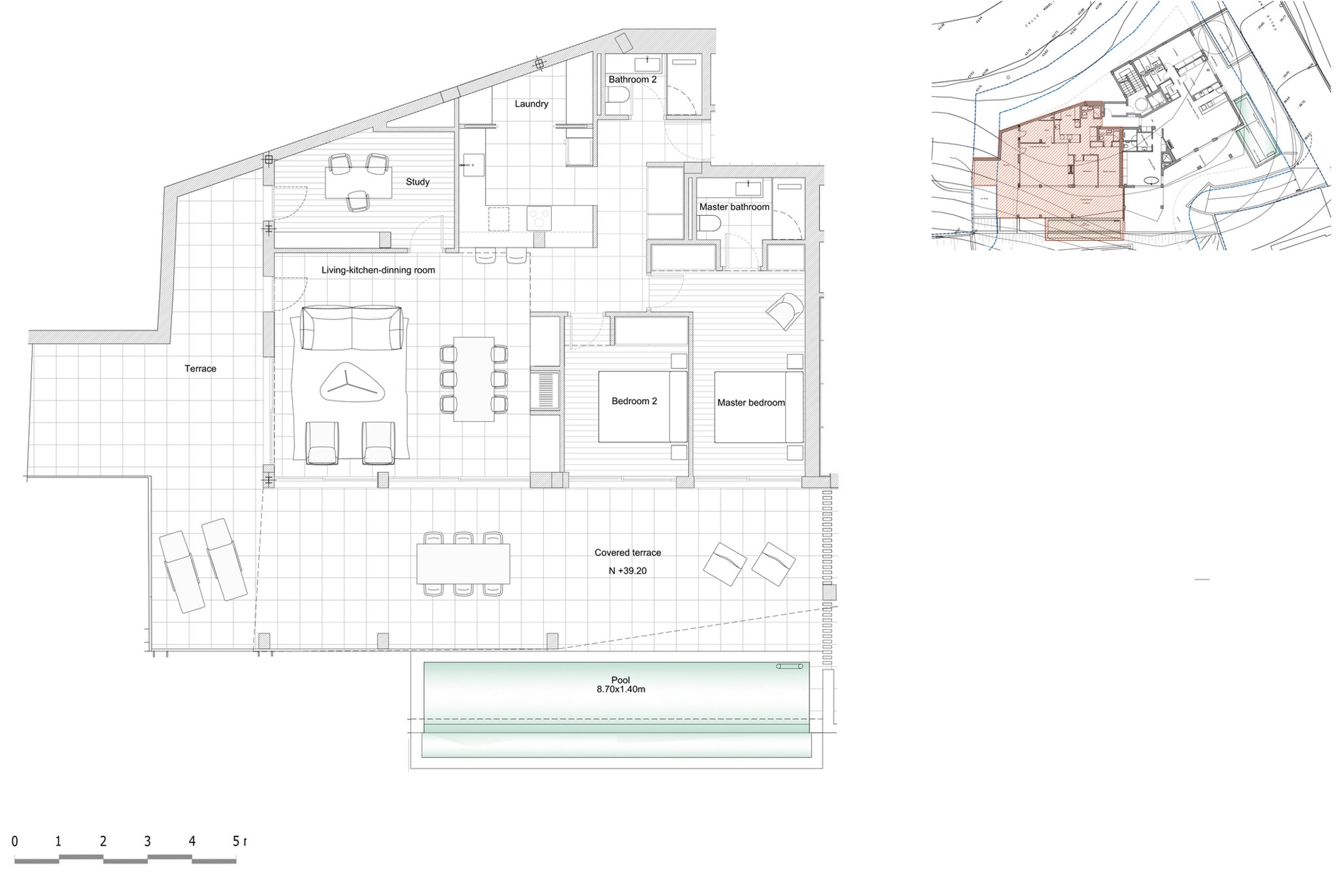 Für weitere Informationen zur Wohnung mit Garten und privatem Pool im Erdgeschoss klicken Sie hier, und zum Penthouse mit privater Terrasse und Pool im fünften Stock klicken Sie hier.