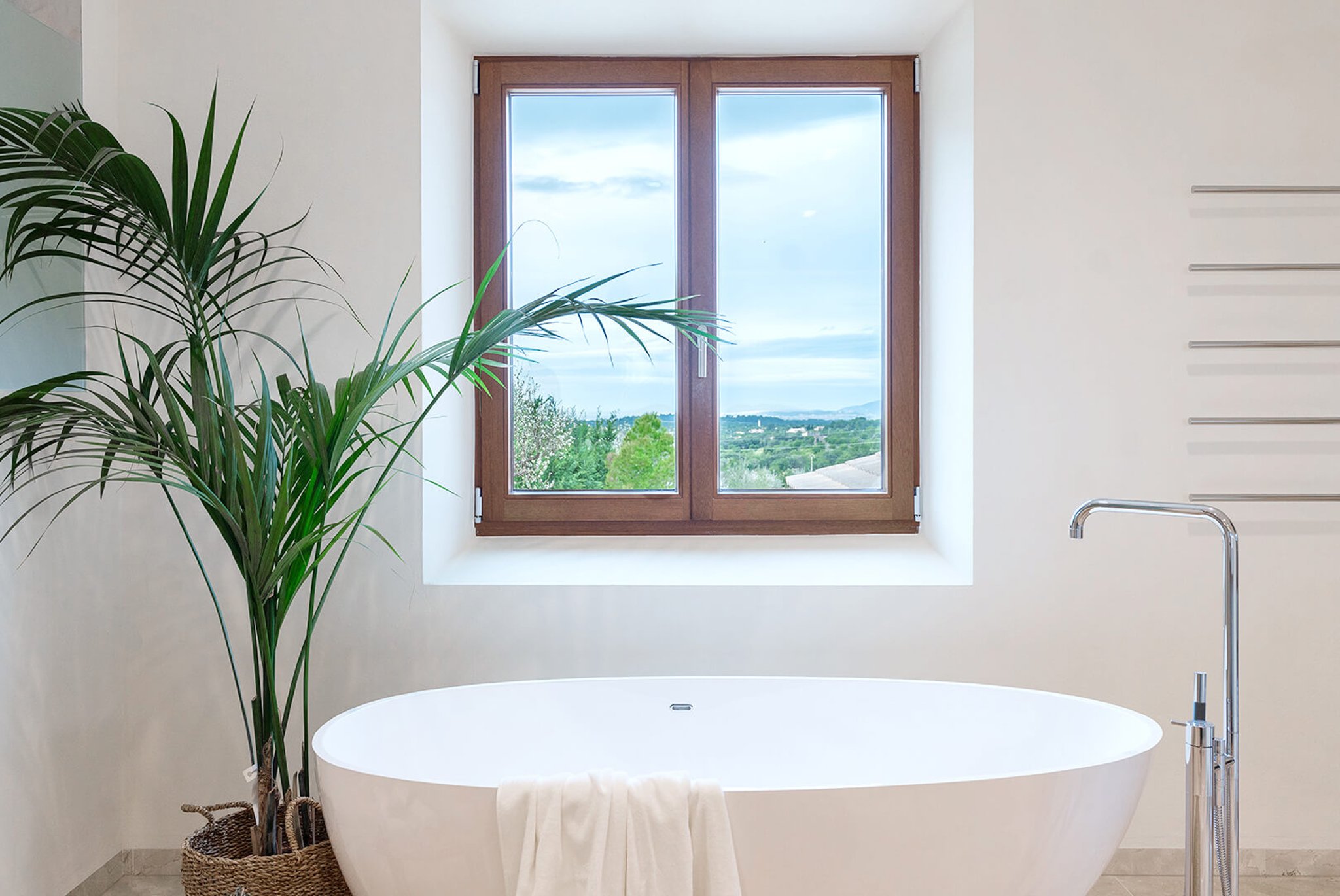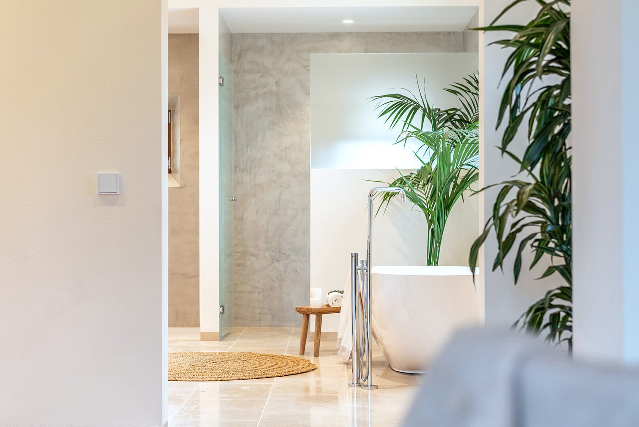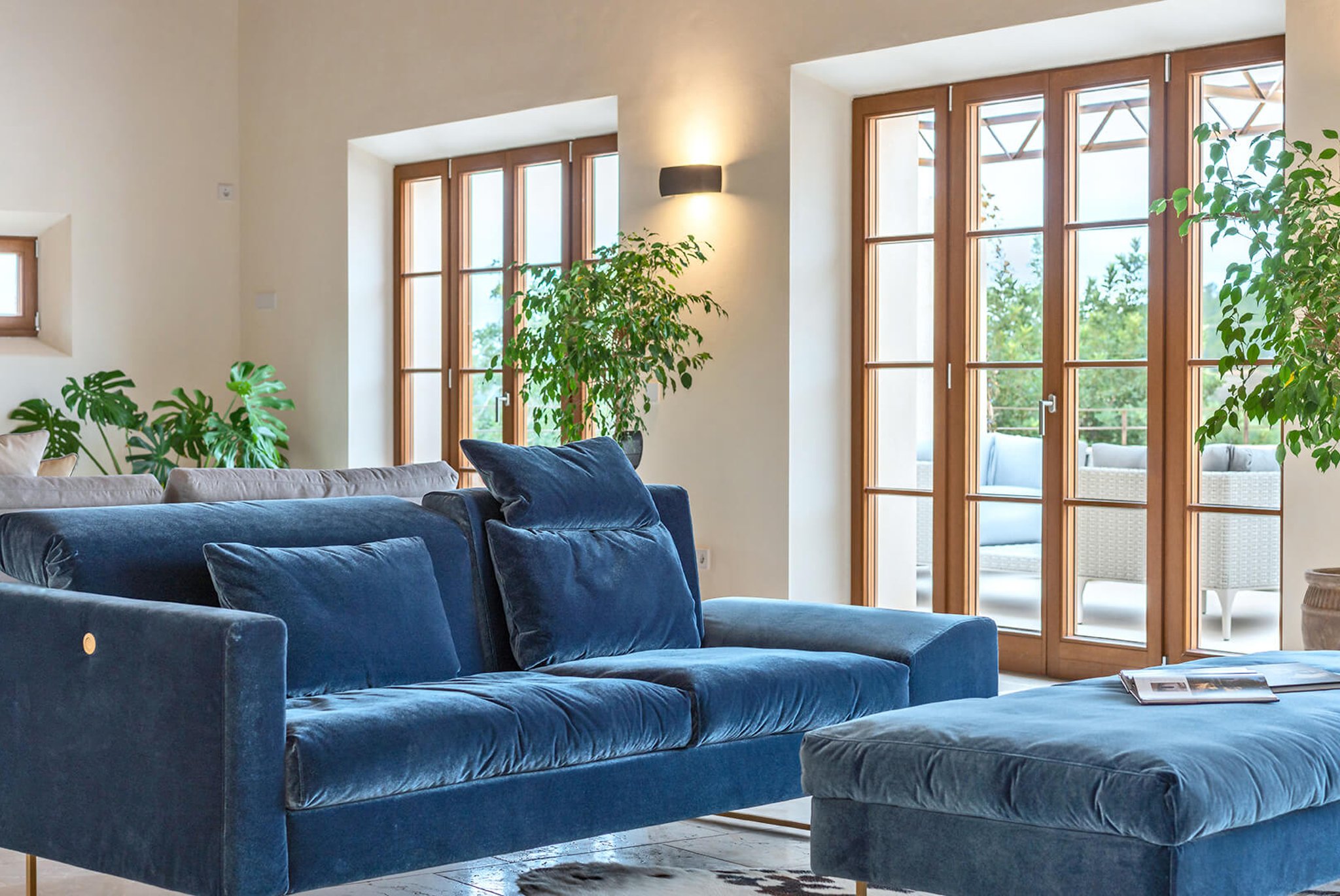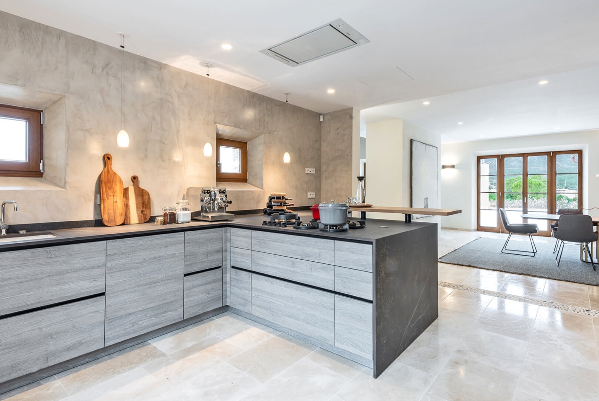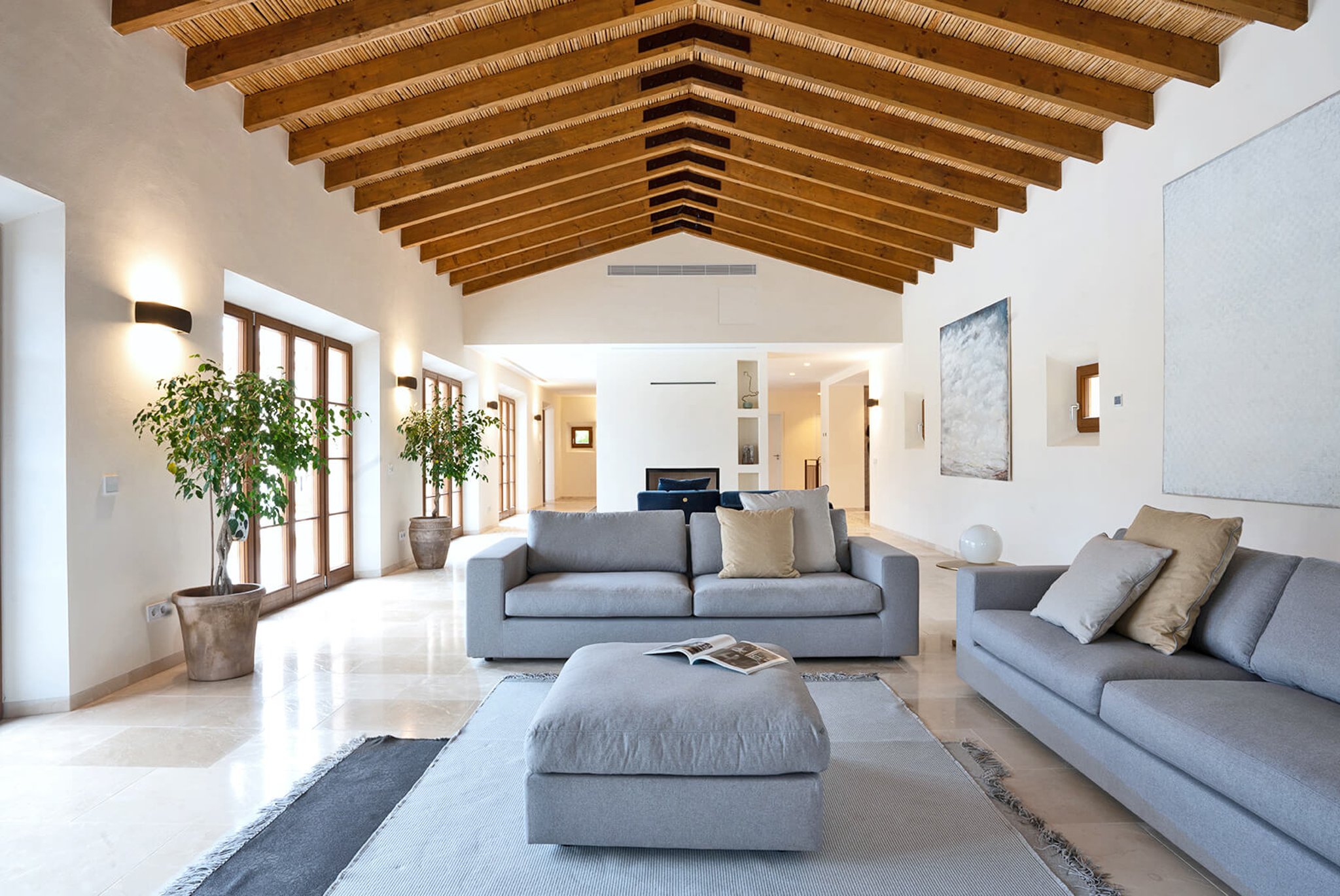 Das gesamte Anwesen ist nach Palma ausgerichtet und bietet einen fantastischen Panoramablick und absolute Privatsphäre. Der Stil ist zeitgenössisch und dennoch mediterran. Der bekannte Architekt Bernardo Oliver steht für authentische Bauten mit moderner Umsetzung. Die Gegend von Santa Maria wird auch von vielen Mandelbäumen, Johannisbrotbäumen und Weinfeldern dominiert. Sie liegt malerisch vor dem Tramuntana-Gebirge, die Kirche ist schon von weitem zu sehen. Santa Maria bietet sich als Ausgangspunkt für zahlreiche Ausflüge in die Berge an. Palma ist in ca. 15 Minuten zu erreichen, ebenso Strände und der Flughafen in 20 Minuten. Die Haupteinkaufsstraße im Dorf bietet eine gute Auswahl an Geschäften, Cafés, Bars und Restaurants.