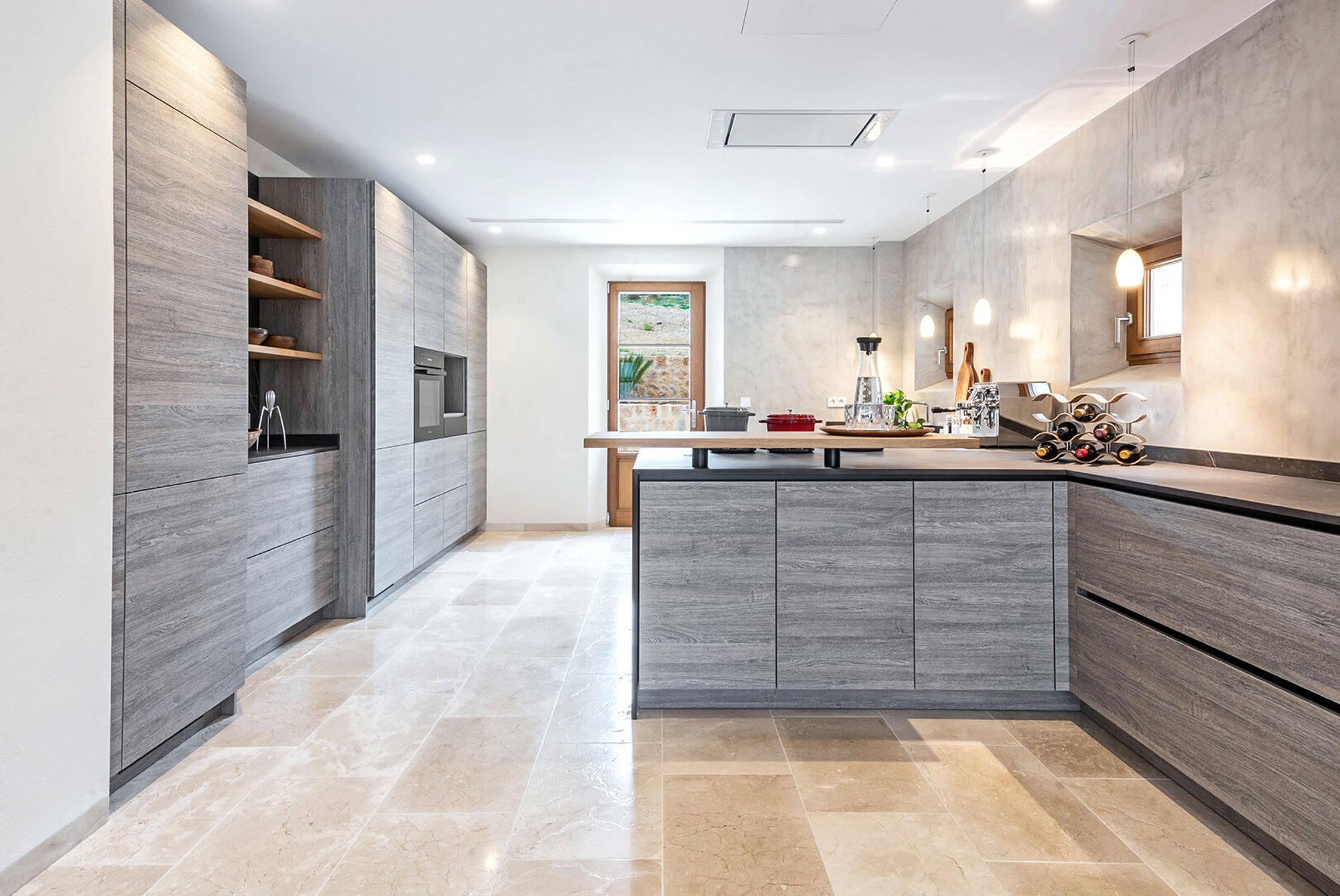 Die Finca mit 5 Schlafzimmern und 5 Bädern lässt absolut keine Wünsche offen. Sie ist mit erstklassigen Materialien in hochwertiger Bauweise gebaut, was diese Luxusimmobilie zu einem besonderen Erlebnis macht. Sie besitzt durch die Wohnfläche von 580 m2 ein äußerst großzügiges Raumangebot, ein großes und helles Wohnzimmer mit Kamin, offene Einbauküche mit Miele-Geräten, fünf Schlafzimmer alle mit en-suite Badezimmern und Zugang zum Außenbereich mit Pool sowie mehrere Terrassenbereiche. Das Anwesen ist mit Fußbodenheizung und umschaltbarer Klimaanlage, Natursteinböden und Holzeinbauten sowie einem 18-Meter-Pool ausgestattet. Neben den 3 Garagenstellplätzen gibt es einen großen Keller von 452 m2, der Platz für eine Bodega/Weinkeller, einen Fitnessraum und Spa mit Sauna sowie Lagerraum bietet.