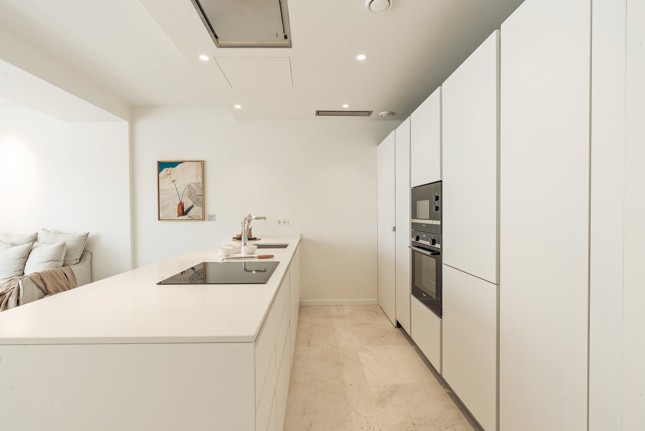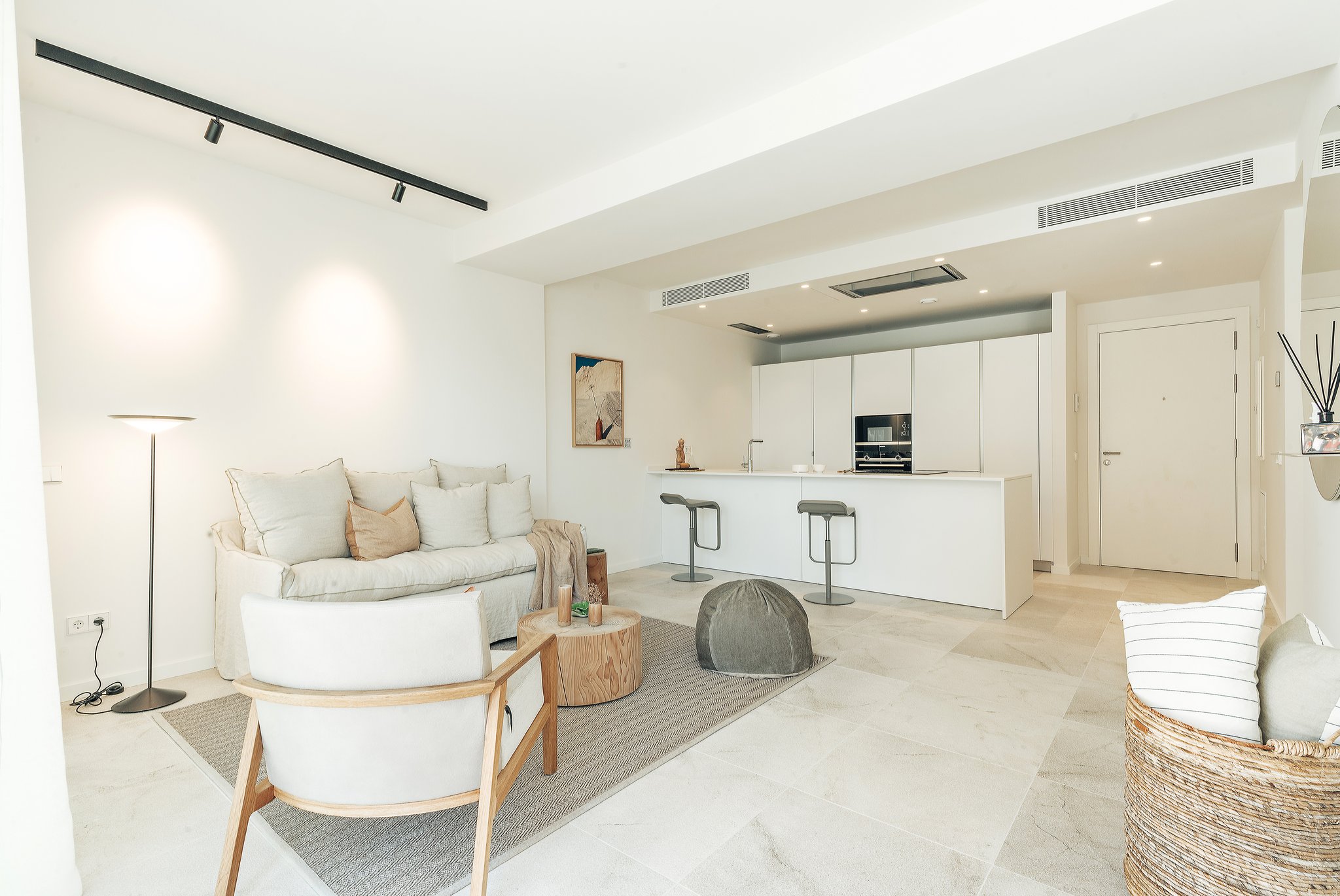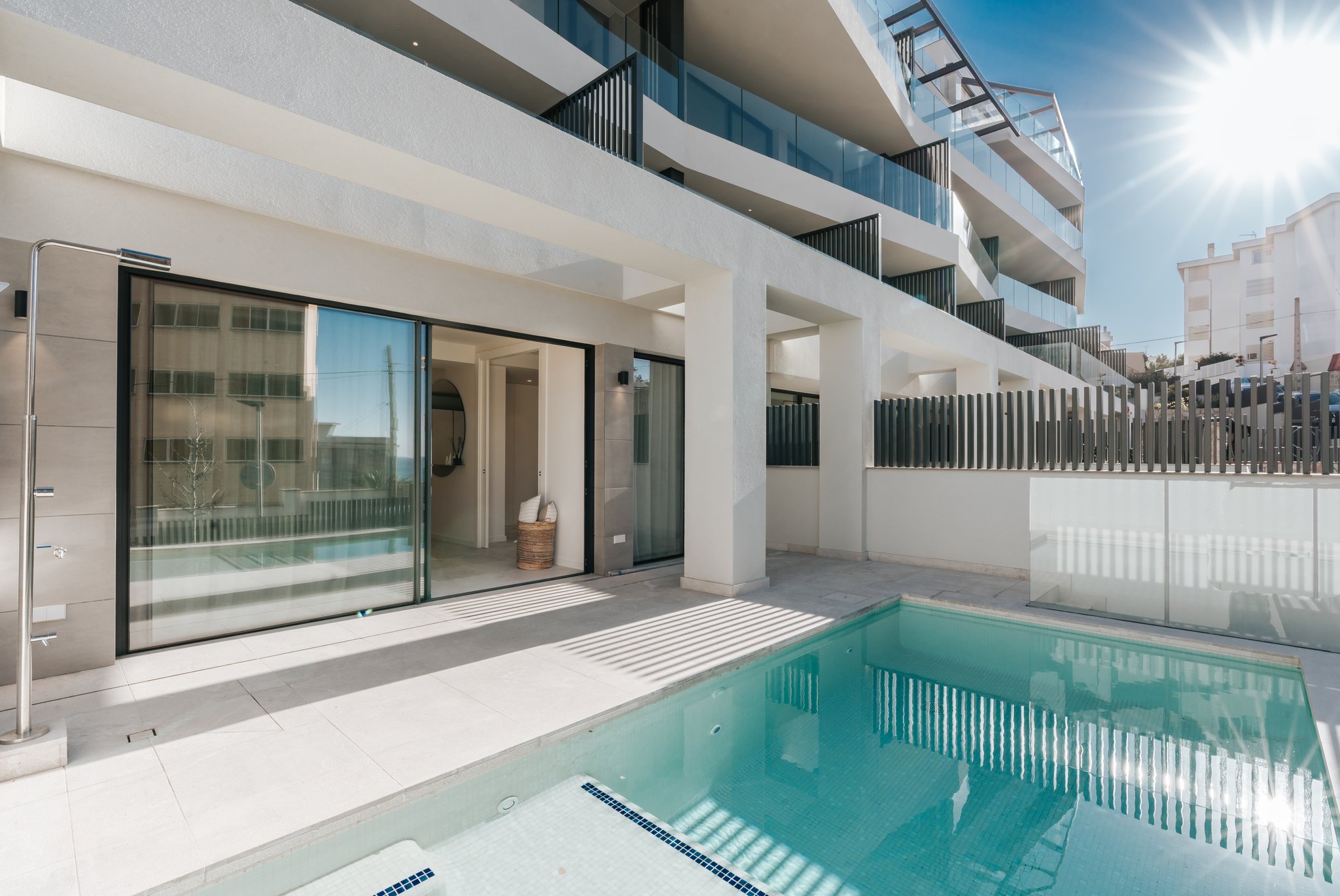 Die Wohnung befindet sich in einer Luxuswohnanlage mit insgesamt 37 Wohnungen. Die ausgewählten Materialien sind von höchster Qualität und von namhaften Marken wie Küchengeräte von Siemens, Klimaanlage von Airzone Lite, Parkettböden in den Schlafzimmern und graue Steinfliesen in Wohn- und Essbereich, Nasszelle und Flur. Das Design ist modern und minimalistisch gehalten mit Liebe zum Detail. Alle Bewohner können die schönen Gemeinschaftsgärten mit einheimischen Pflanzen sowie den gemeinschaftlichen Infinity-Pool mit Sonnenterrasse genießen.