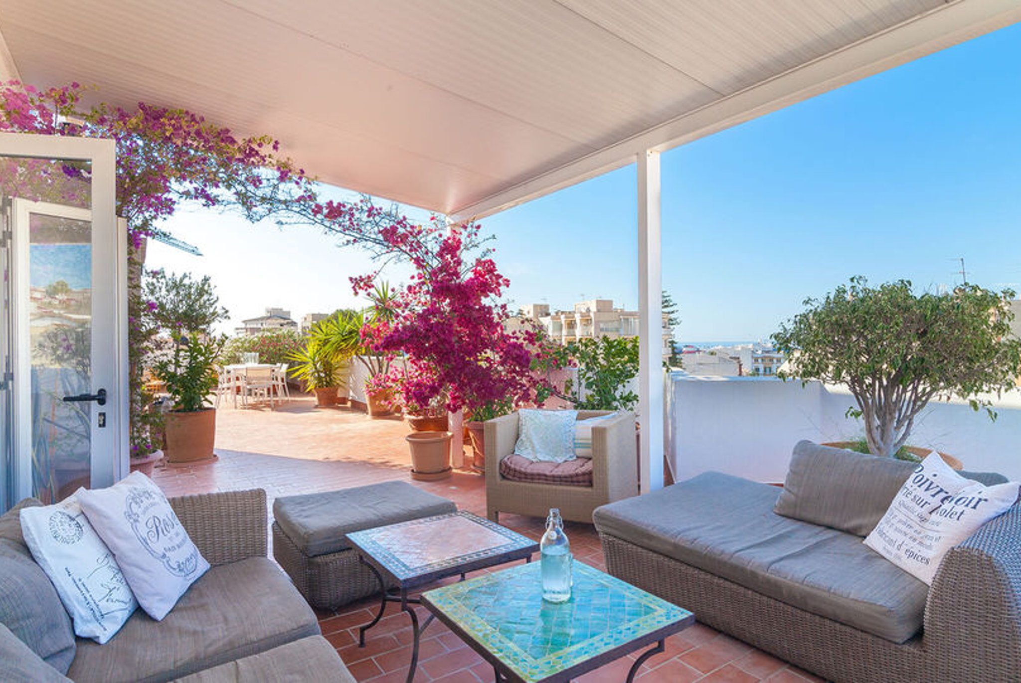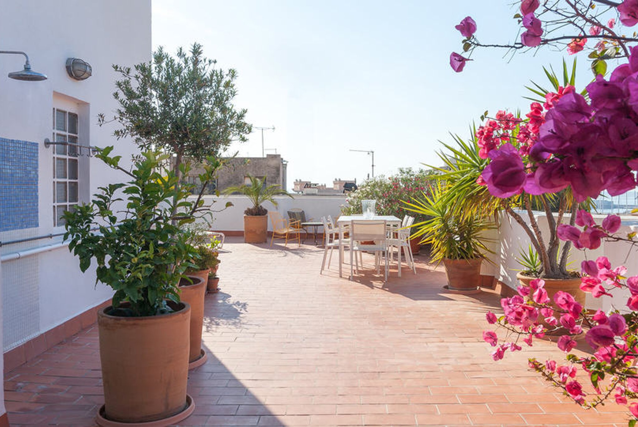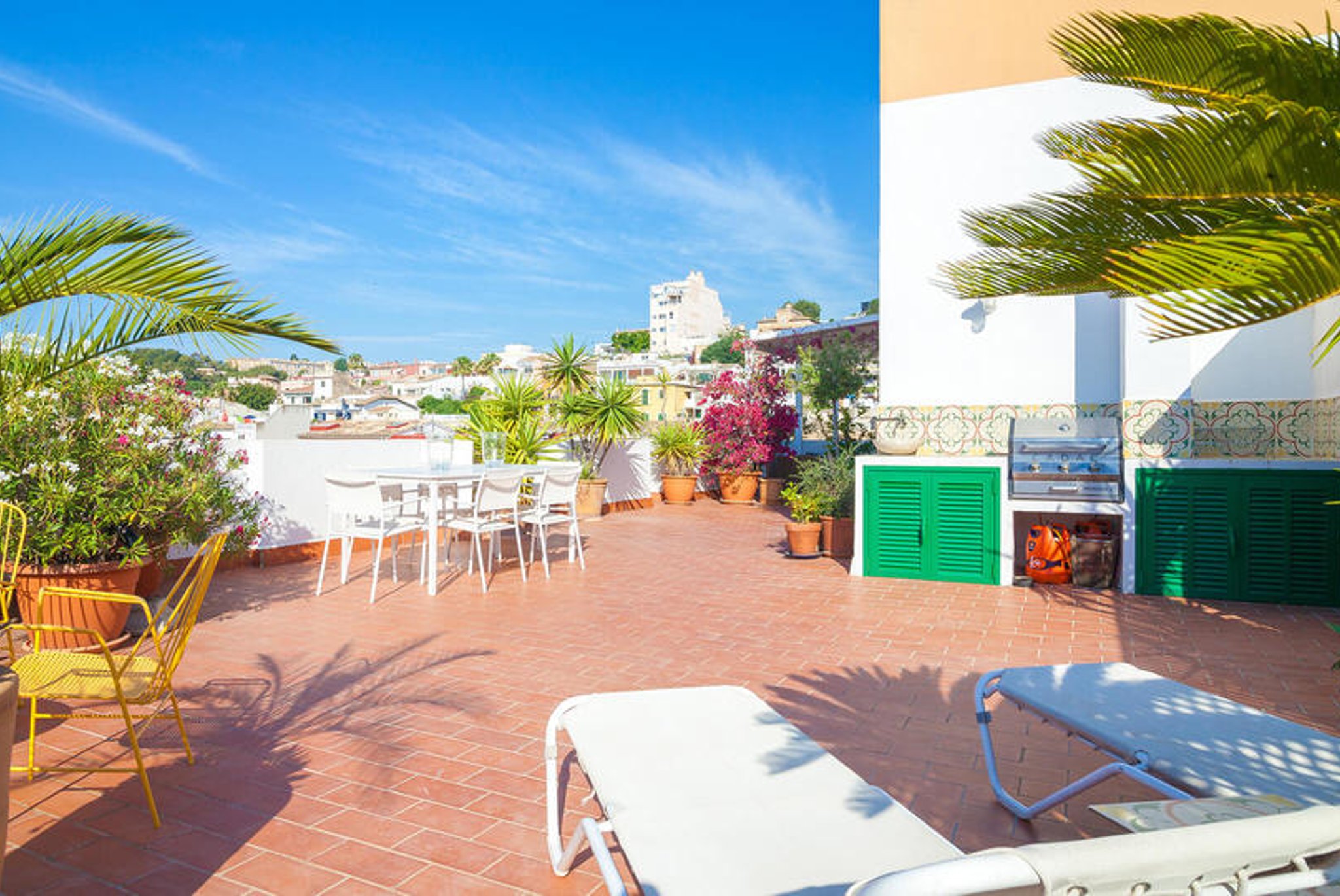 Von der Küche und einem der Schlafzimmer gelangt man auf die Terrasse, wo man von morgens bis abends Sonne und Schatten genießen kann. Man geniesst eine Aussicht über die Dächer von El Terreno und den Hafen im Hintergrund. Auf der Terrasse sind eine Außenküche und eine Dusche für wärmere Tage installiert. Es gibt viel Platz für Sonnenliegen, Sitzgelegenheiten, vielleicht Yoga oder andere Workouts mit Aussicht; Kurz gesagt, ein einzigartiger Ort, an dem Sie von zu Hause aus viel im Freien genießen können.