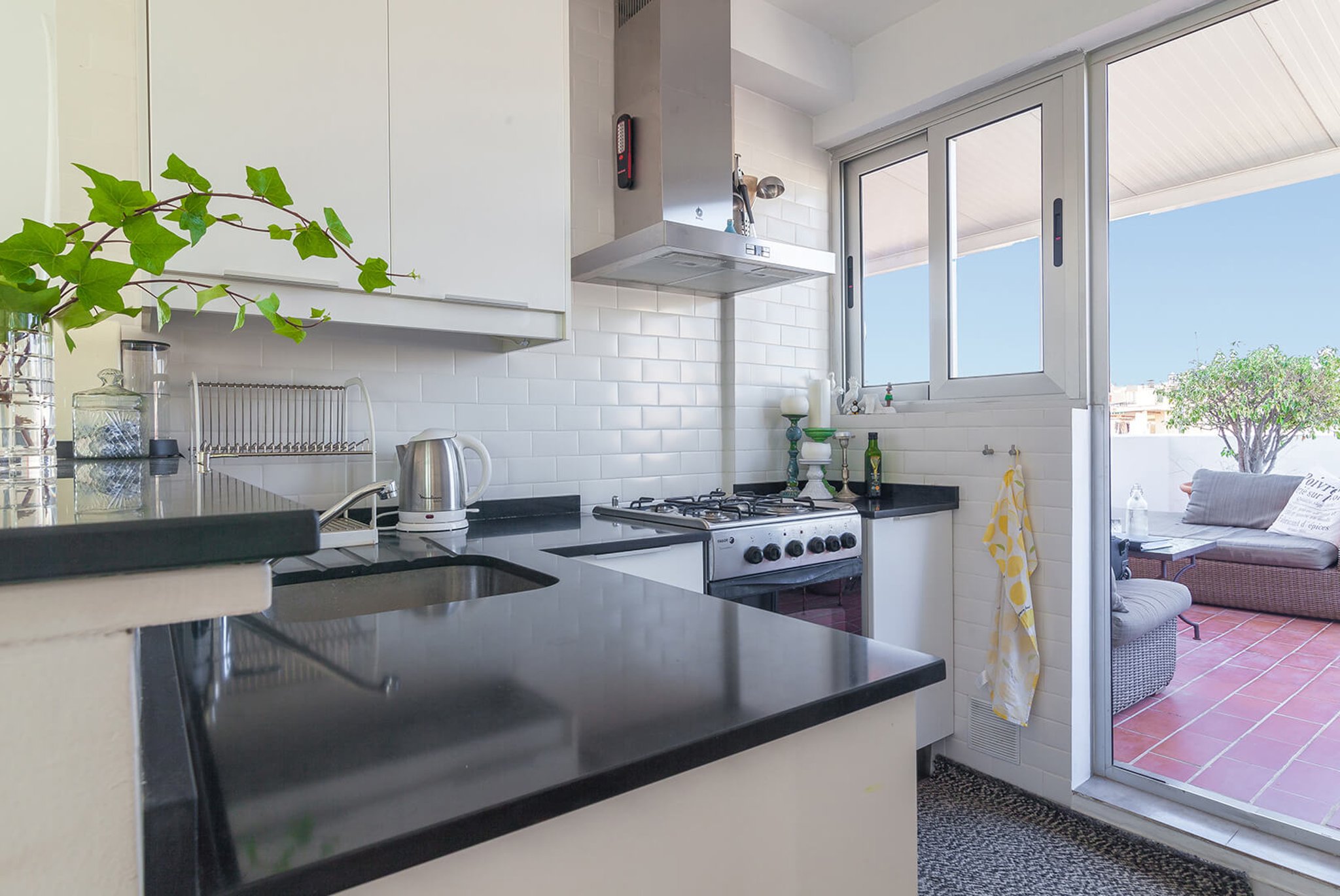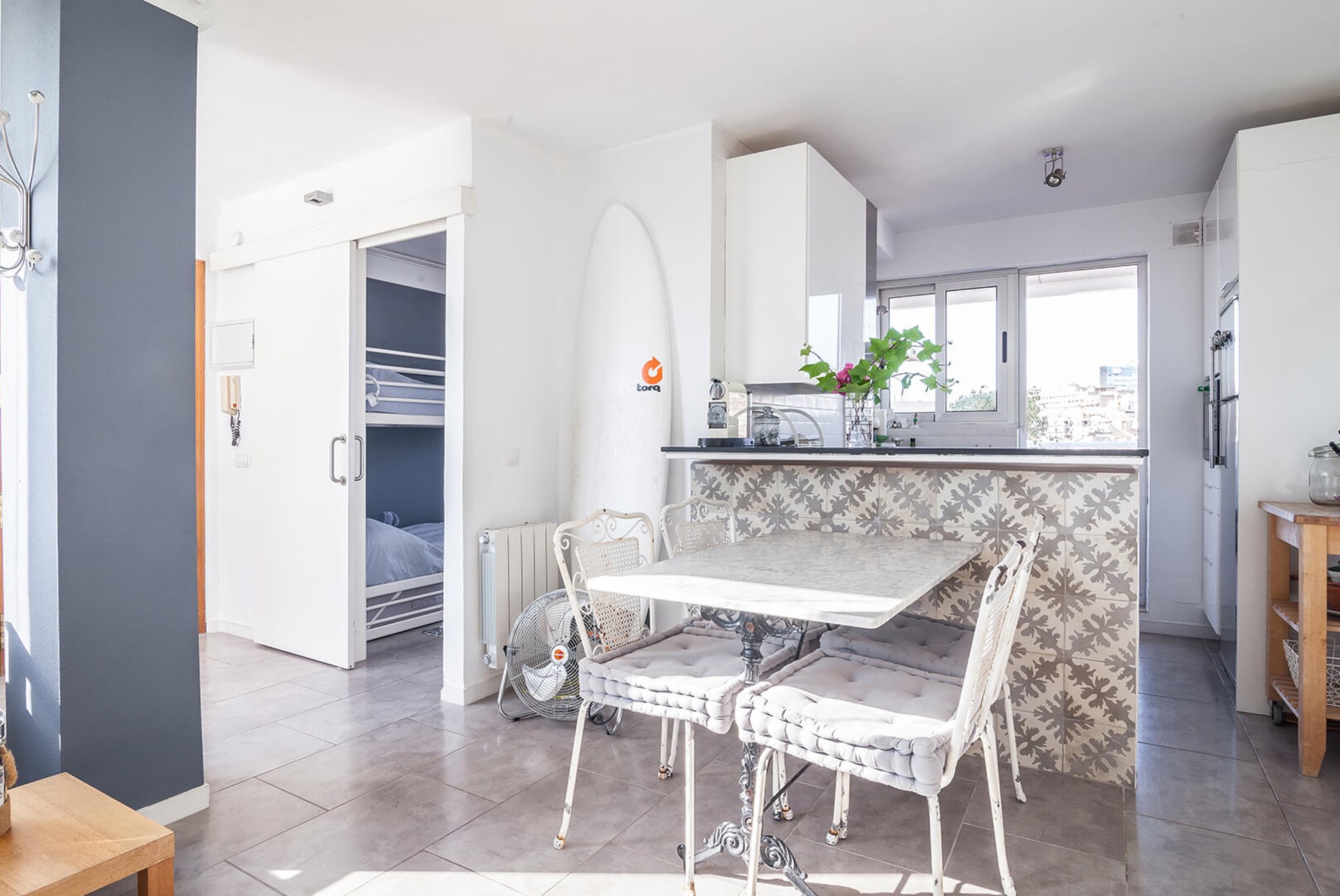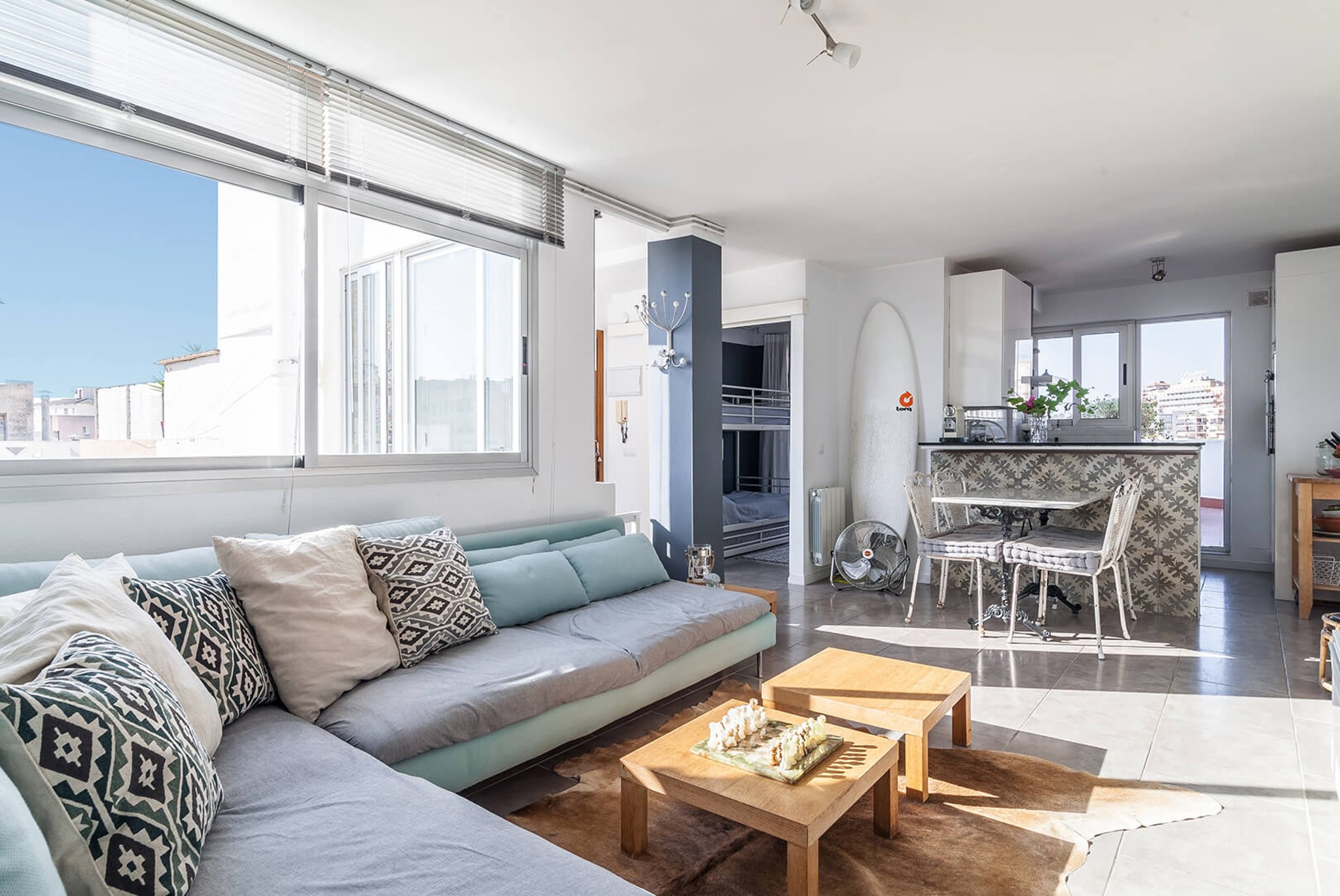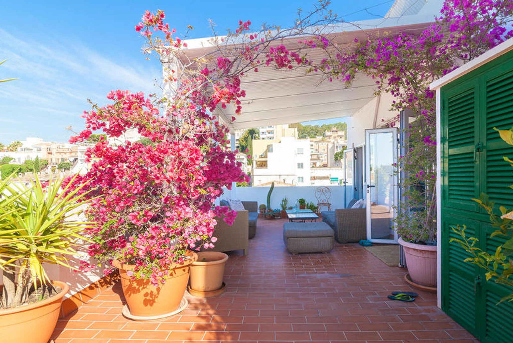 Von der Küche und einem der Schlafzimmer gelangt man auf die Terrasse, wo man von morgens bis abends Sonne und Schatten genießen kann. Man geniesst eine Aussicht über die Dächer von El Terreno und den Hafen im Hintergrund. Auf der Terrasse sind eine Außenküche und eine Dusche für wärmere Tage installiert. Es gibt viel Platz für Sonnenliegen, Sitzgelegenheiten, vielleicht Yoga oder andere Workouts mit Aussicht; Kurz gesagt, ein einzigartiger Ort, an dem Sie von zu Hause aus viel im Freien genießen können.