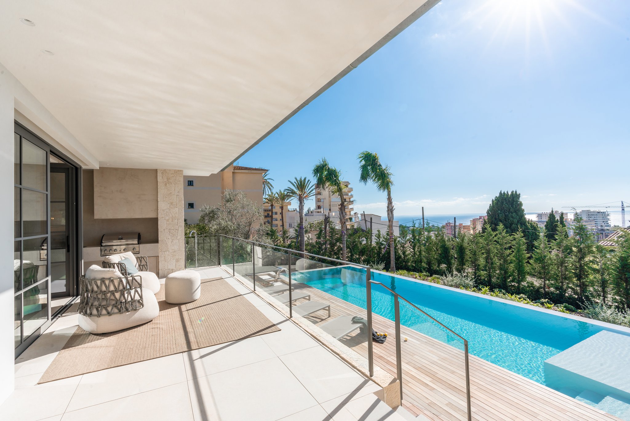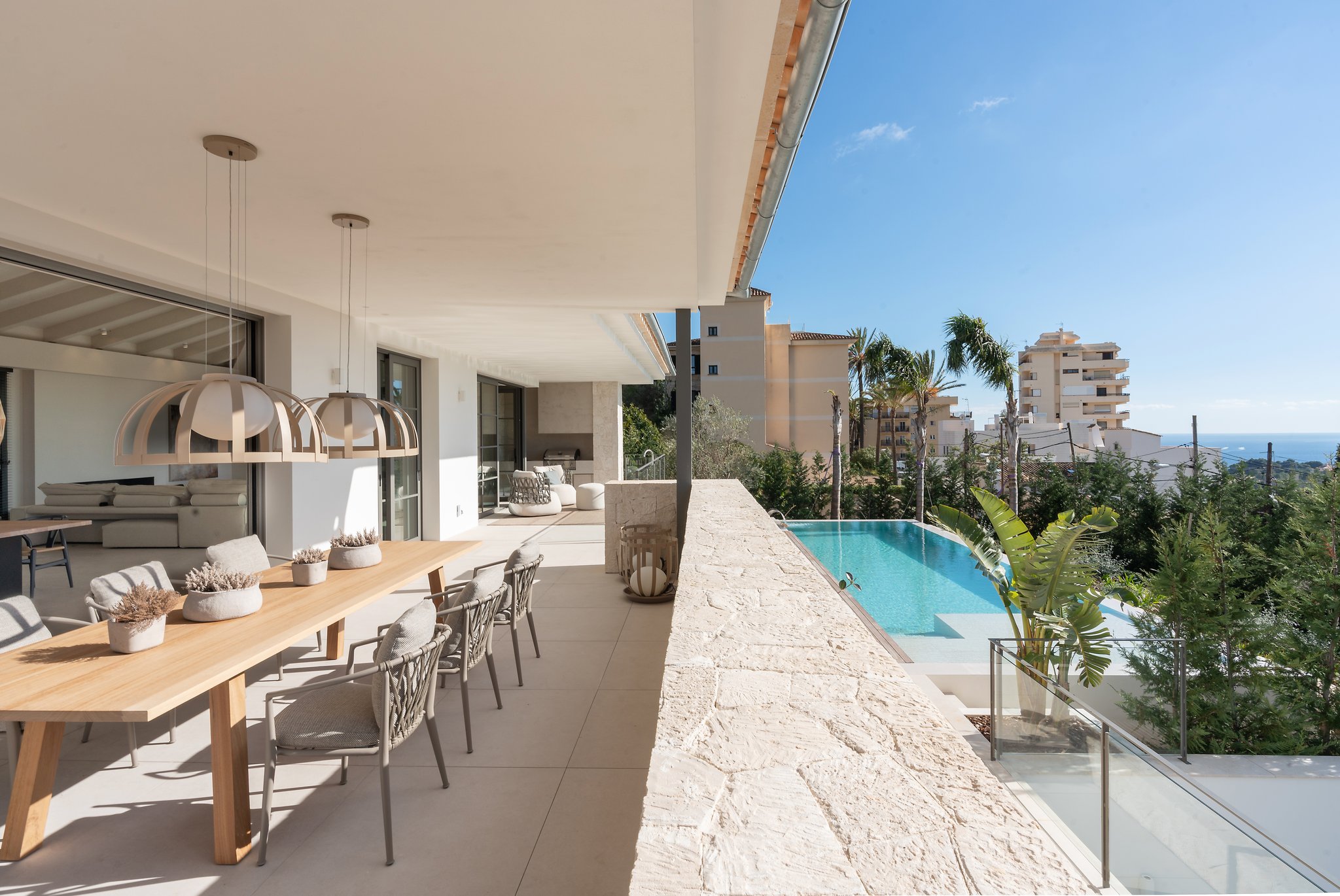 Dieses spektakuläre, neu gebaute Haus mit herrlichem Blick über die Bucht von Palma befindet sich in der ruhigen Gegend Bonanova. Bonanova liegt auf den Hügeln oberhalb von Palma und ist ein perfektes Wohngebiet für Familien, mit mehreren Schulen in der Umgebung sowie Grünflächen, aber dennoch nur wenige Autominuten vom Zentrum von Palma entfernt.