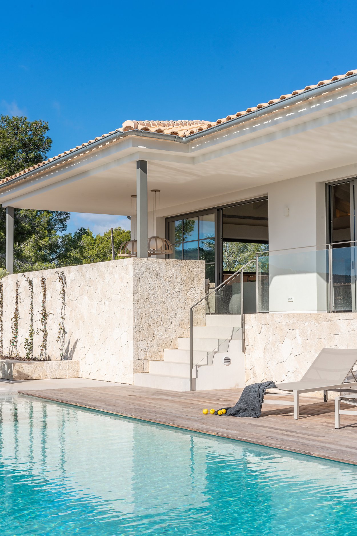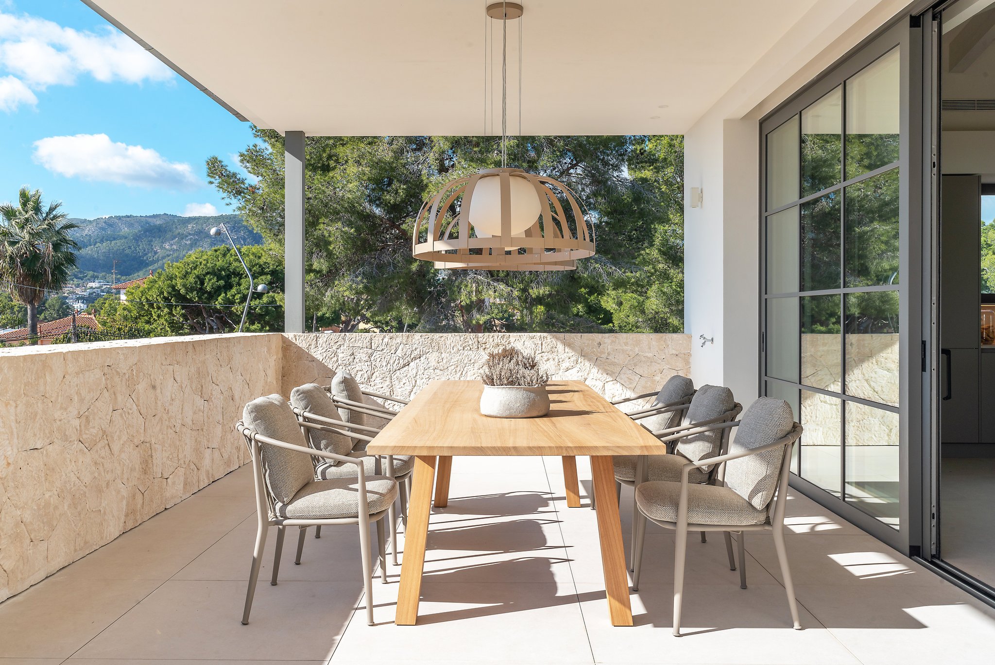 Zusatzinformationen: Klimaanlage, Salzwasserpool, Kamin, Fußbodenheizung, Alu-Isolierverglasung, Alarmanlage, automatisches Bewässerungssystem, Gartenmöbel von Terraza Balear, BBQ, Garage, elektrische Tore.